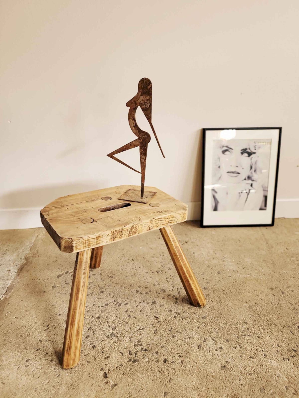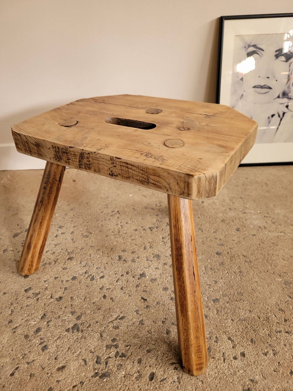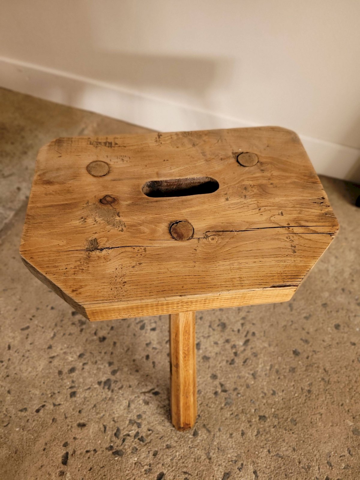 Lot 3 anciens tabourets tripodes/tabourets brutalistes/tabourets bois anciens