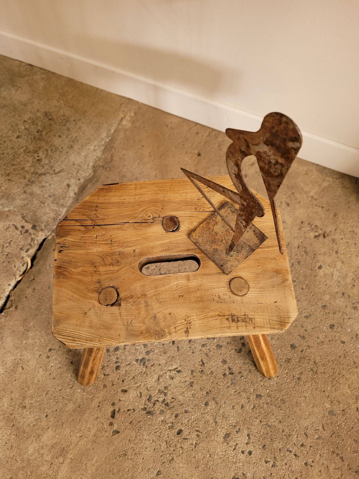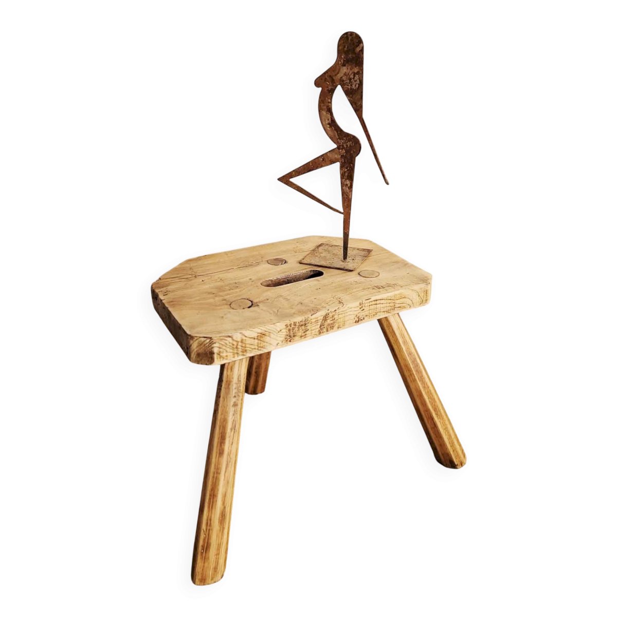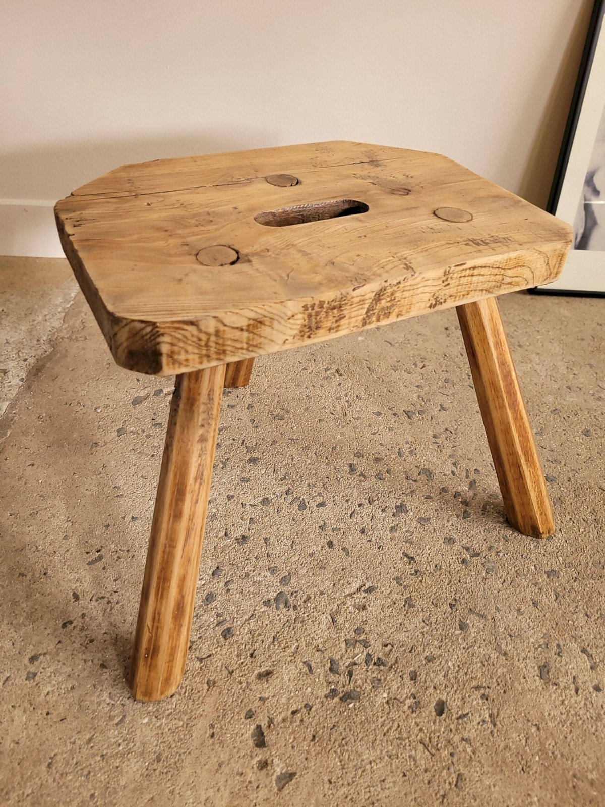 Lot 3 anciens tabourets tripodes/tabourets brutalistes/tabourets bois anciens