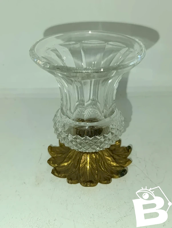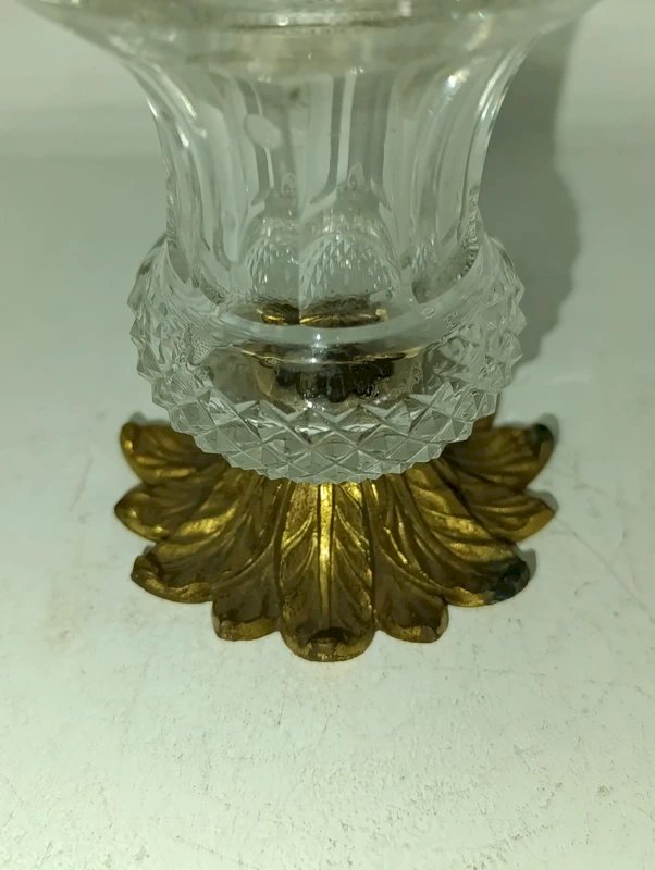 petit vase ancien en cristal et pied laiton ou bronze n bon etat Doré