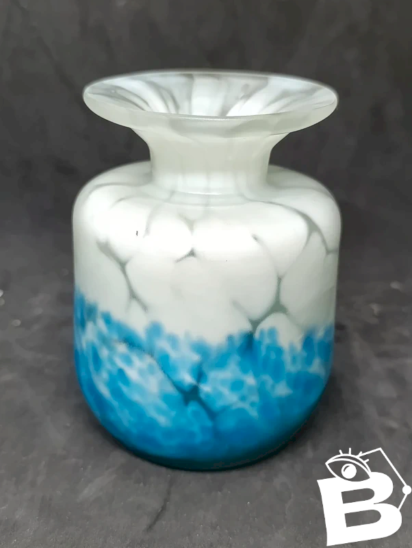 petit vase blanc degrade bleu signé Argyl en bon etat