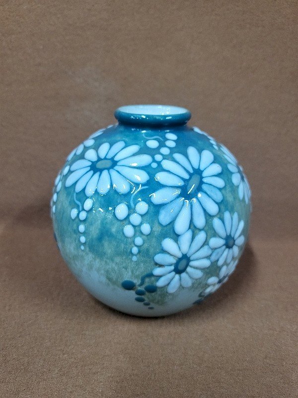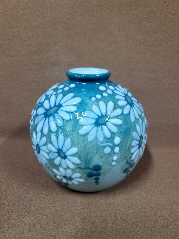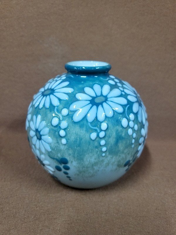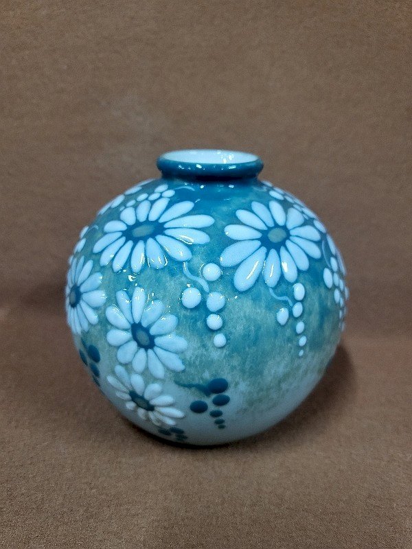 joli petit vase de Camille Tharaud Limoges il est en très bon état il a un joli décor c'est une très belle pièce il mesure 11.3 cm de diamètre sur 11 cm de haut Objet:Vase
