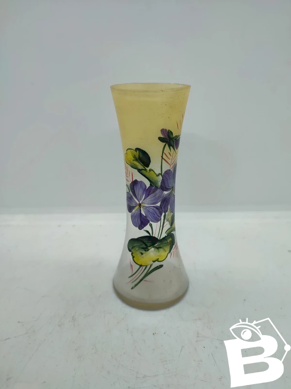 petit vase en verre peint à decor floral sans dotue premiere partie du 20 eme siecle en bon etat