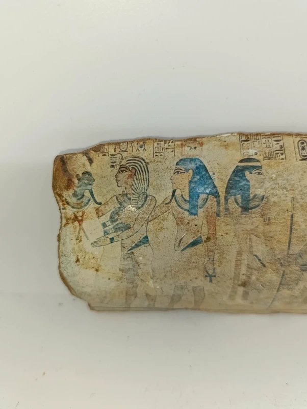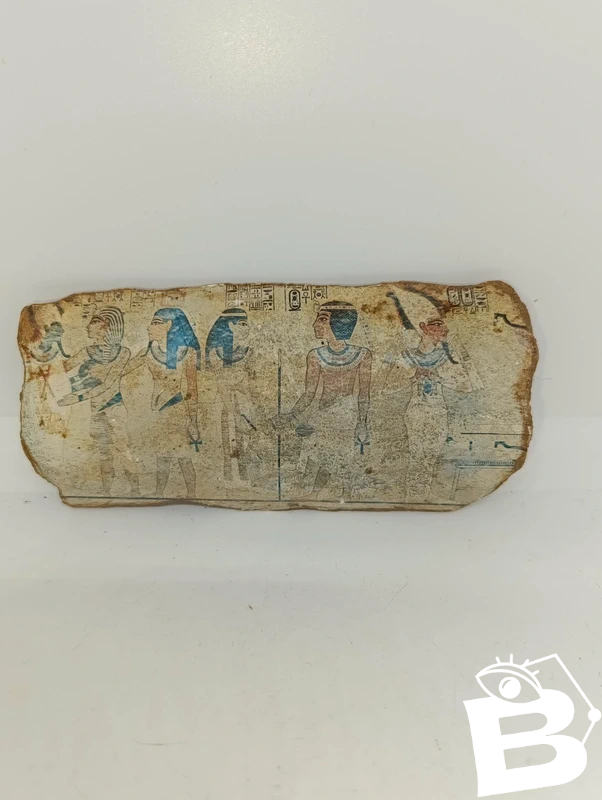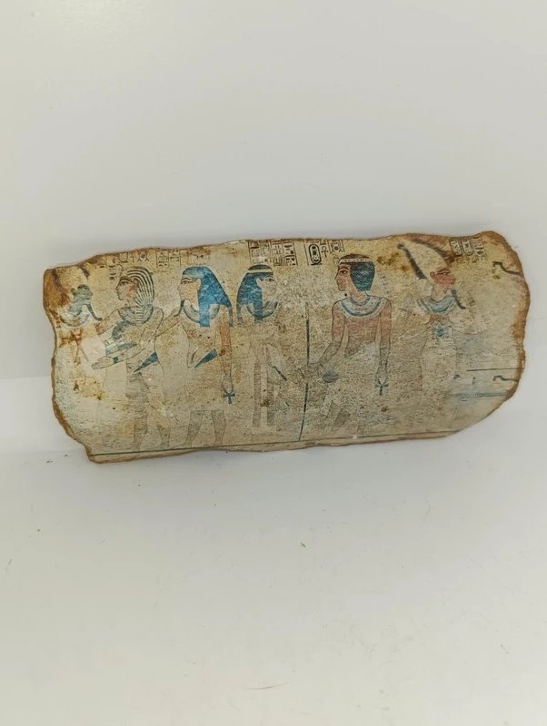 petite plaque en argile ou terre cuite et tissu fibré? decor de scene de vie egyptienne