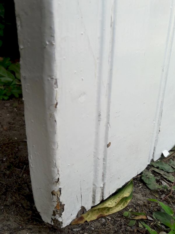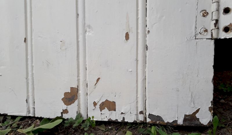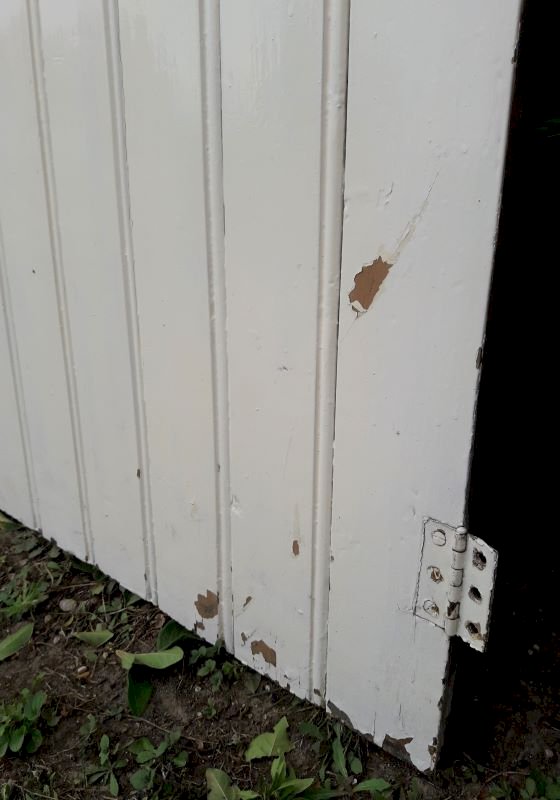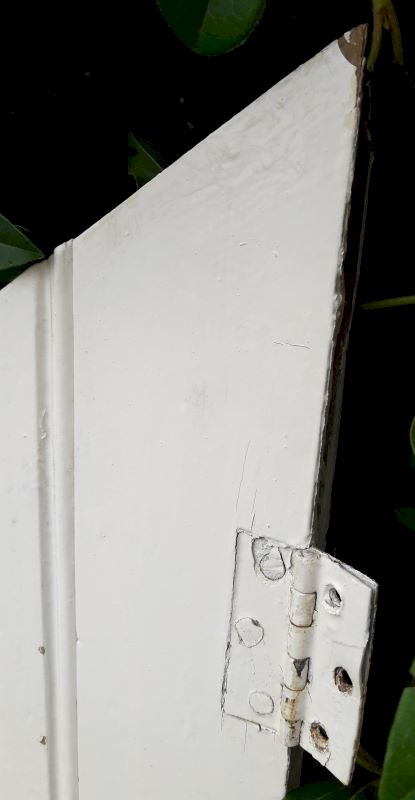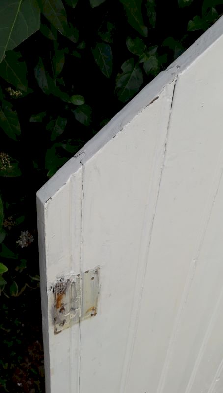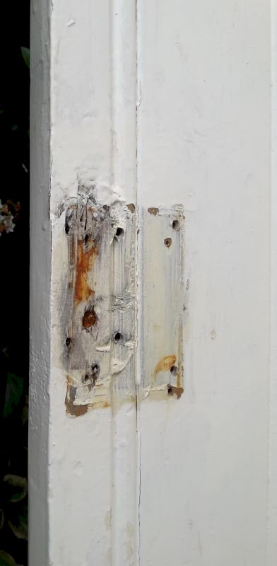 Les traces d’un ancien verrou sont visibles à l’extérieur.