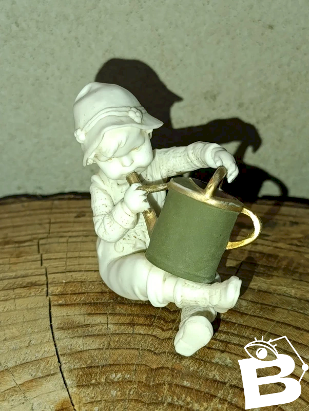 petite sculpture ancienne en porcelaine enfant à l'arrosoir en bon etat juste une petite egrenure au chapeau (voir photos) hauteur 8cm longueur 8cm numero sous la base...