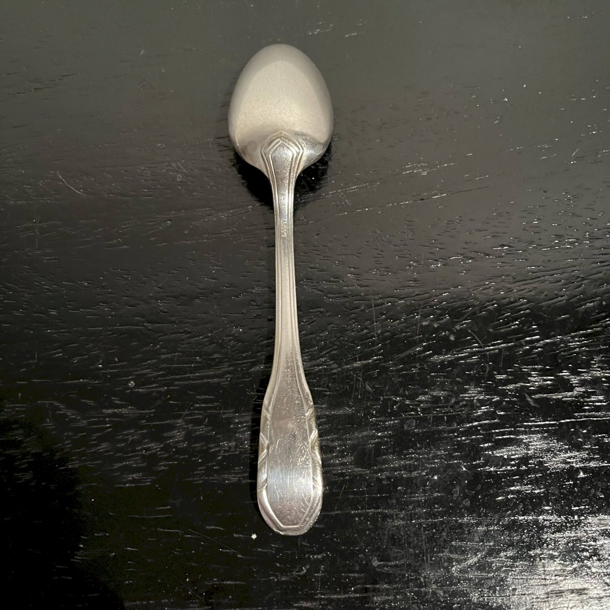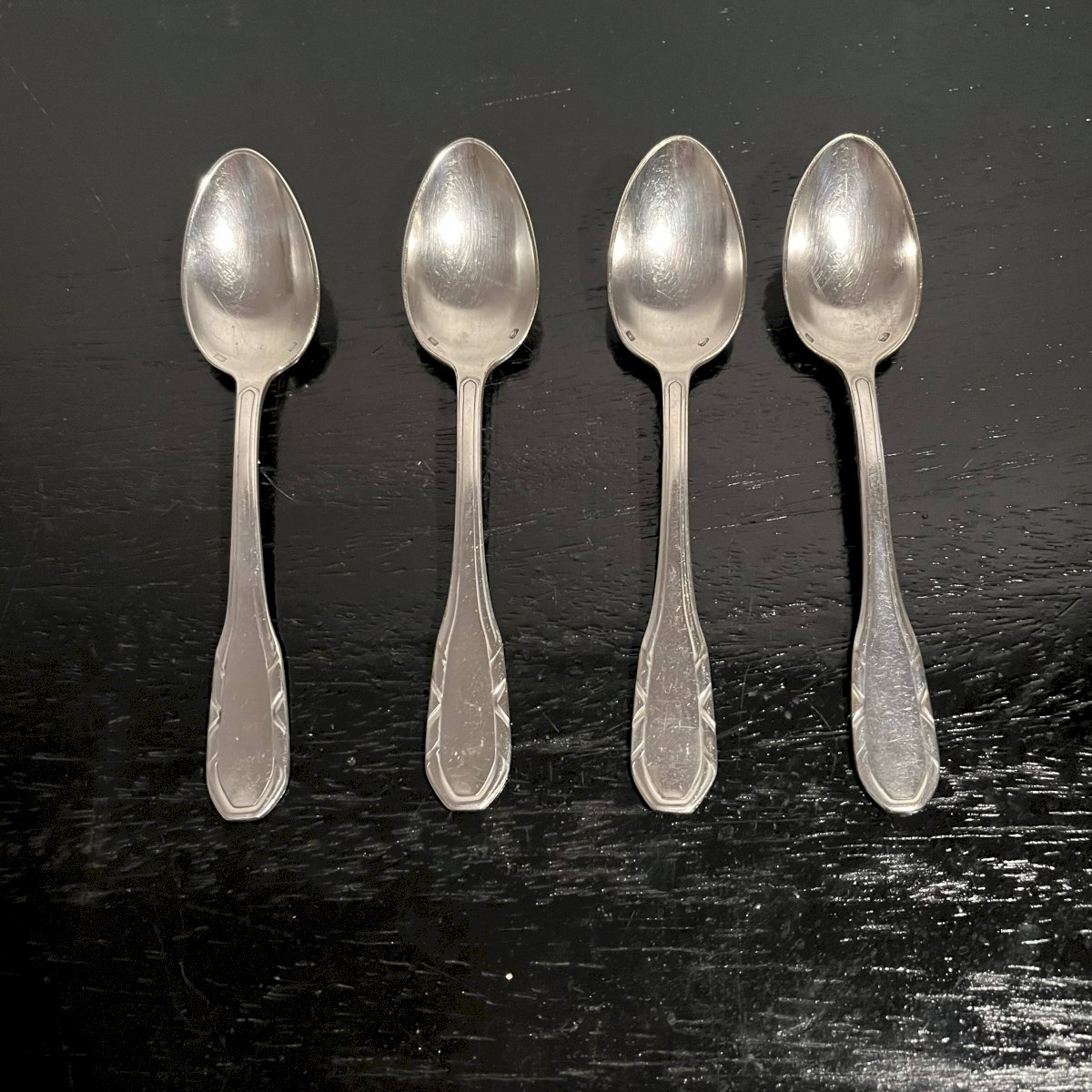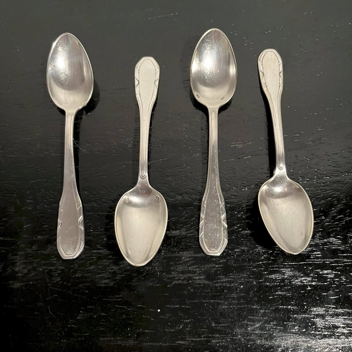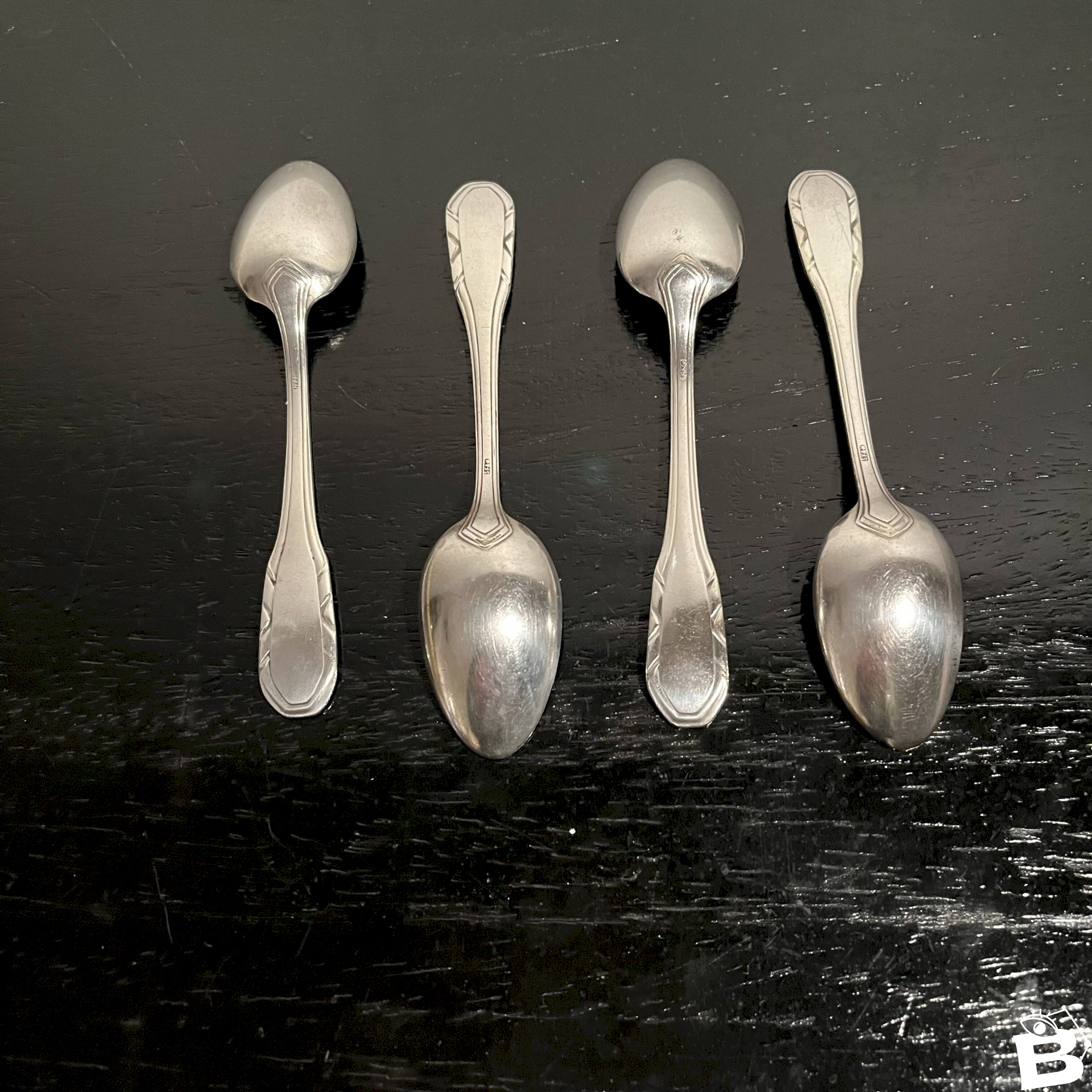 Lot de 4 petites cuillères en métal argenté esprit Art Déco.Cuillères à soupe et fourchettes assorties (n'hésitez pas à regrouper vos achats pour économiser sur les frais d'expédition).
