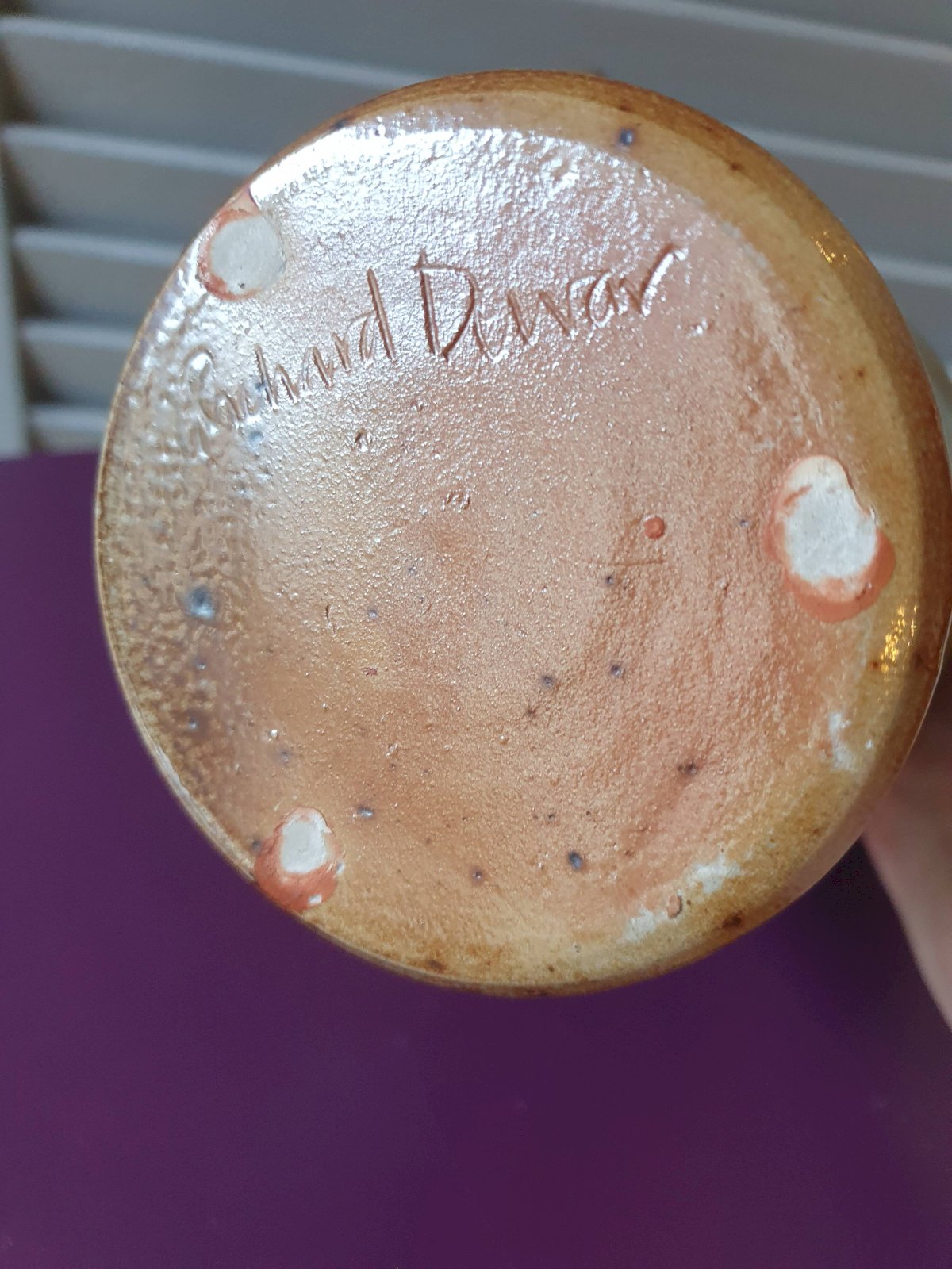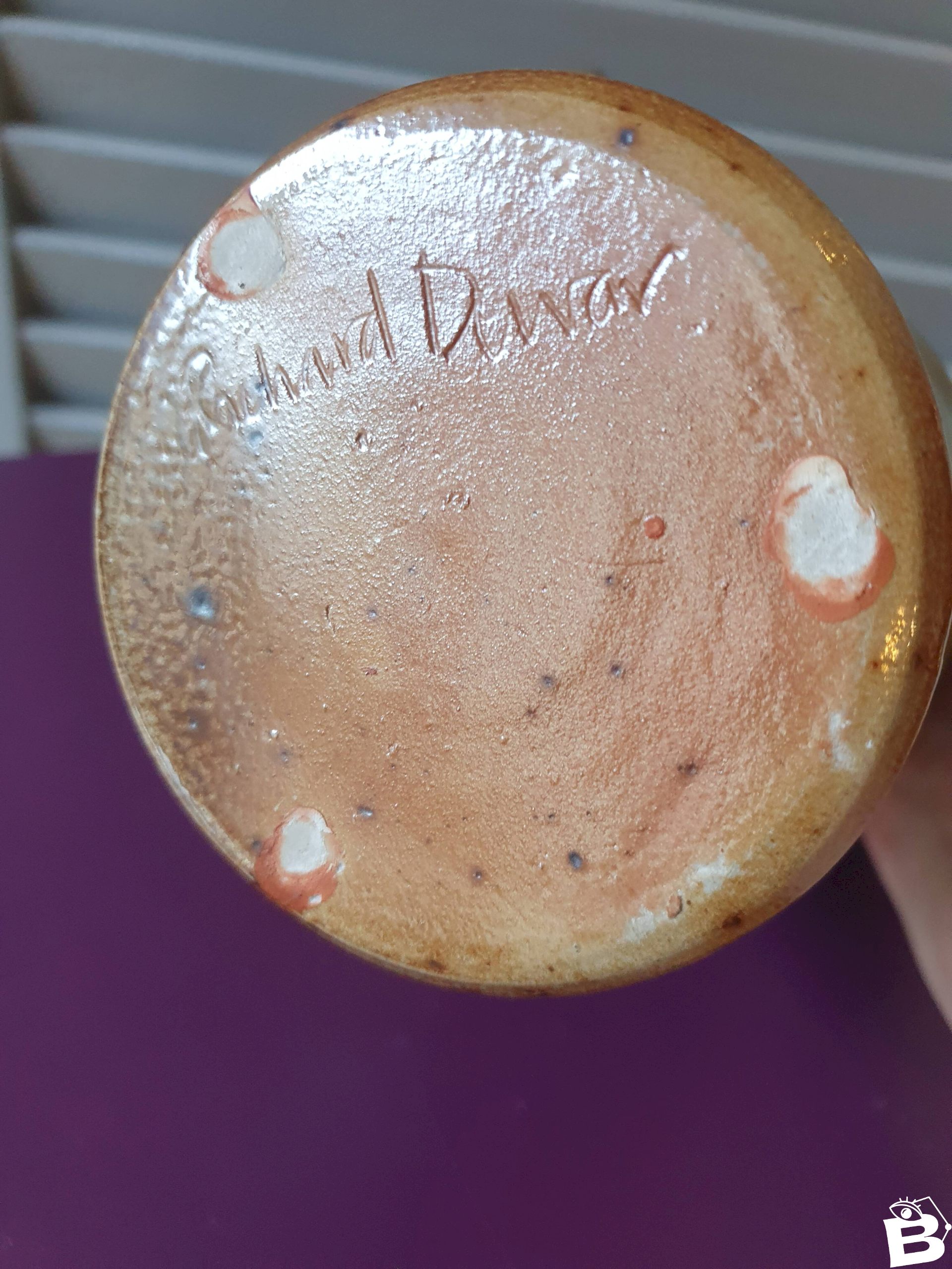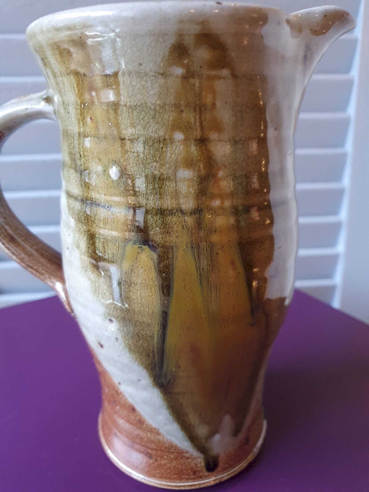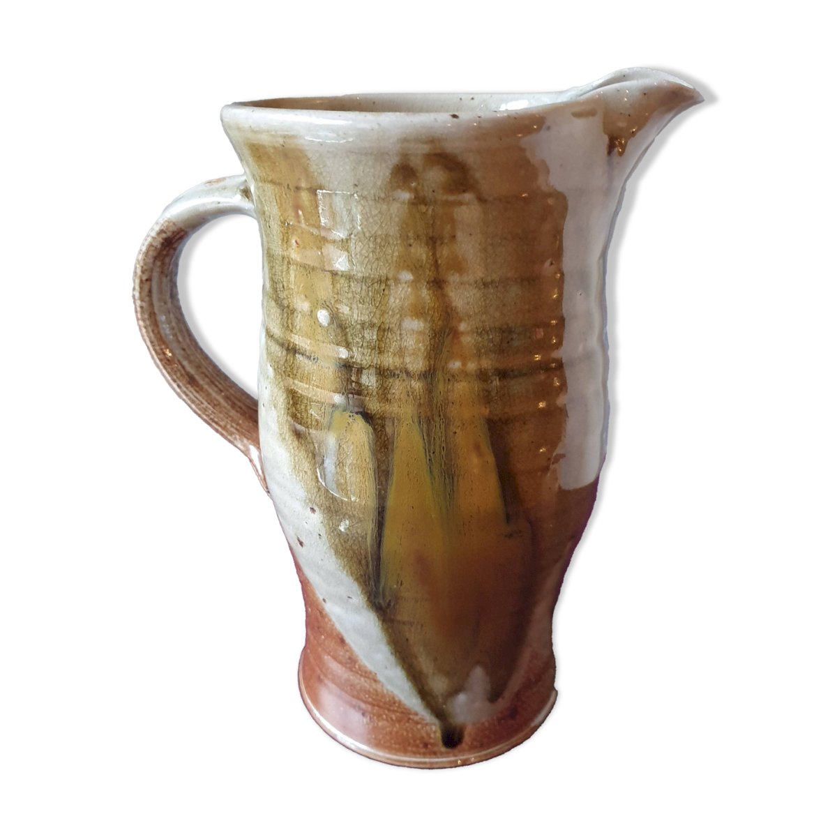 pichet cruche grès terre cuite vernisée signature à identifier 84 artisanat pot
