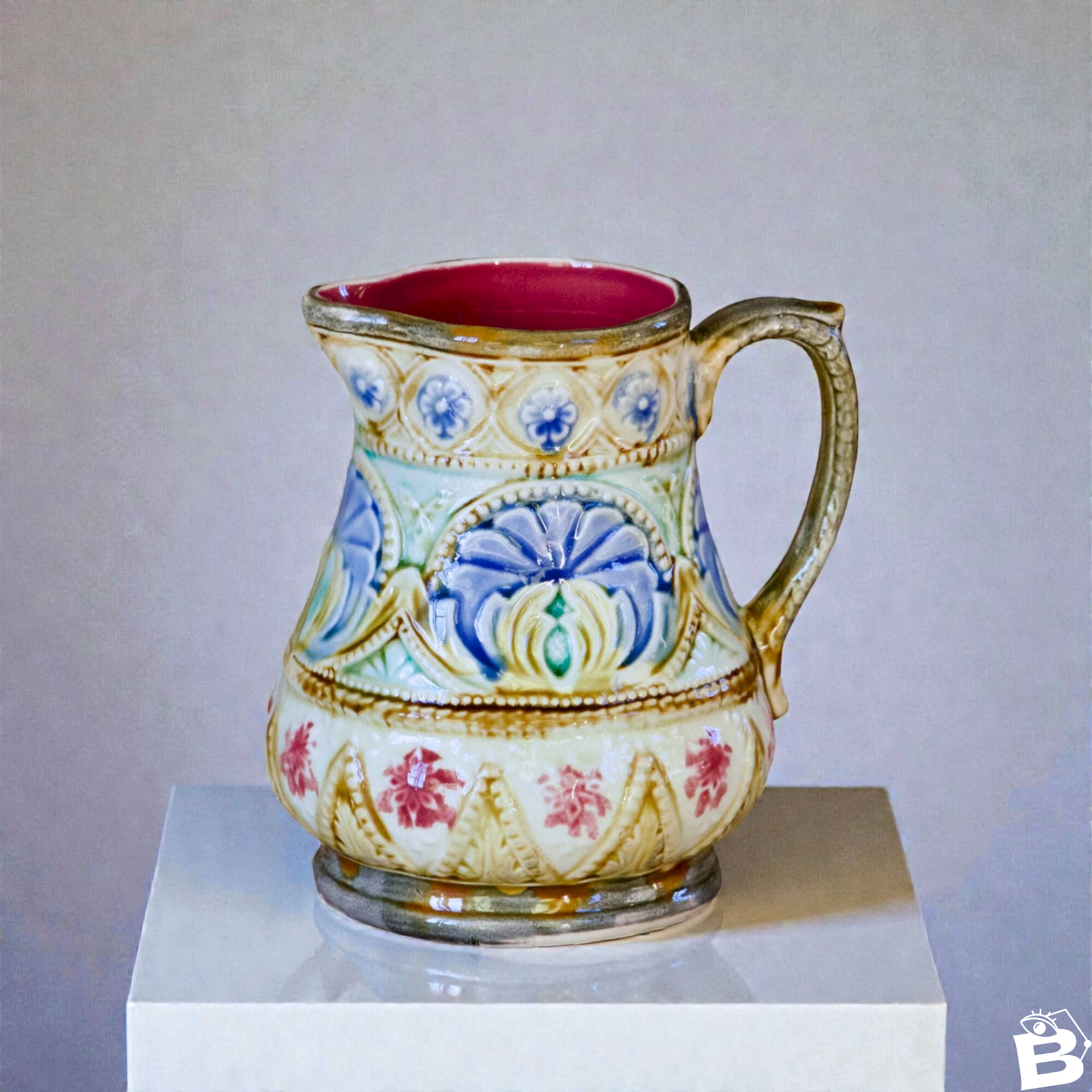 Merveilleux pichet ancien du XIXe siècle en barbotine / majolique estampillé de la maison belge de Nimy les Mons, Mouzin Lecat, circa 1851 - 1878.Magnifique décor en relief polychrome multicolore composé de rosaces florales, frises perlées, cartouches florales stylisées.Polychromie vive bleu cobalt, vert d’eau, jaune ocre et rose floral.Intérieur émaillé rose framboise.Forme ventrue reposant sur un petit piédouche circulaire.Col resserré et bec verseur trilobé.Anse épaisse et nervurée.Pour collectionneur de barbotine antique, en élément décoratif, en tant que petit vase très original et avec du caractère ou en utilisation concrète.Il est en très bon état.Signature visible au cul.? 12 X 10 cm.✨ Envoi très soigné.✨ Boutique professionnelle.✨ Vous disposerez d’une facture et bénéficierez d’un SAV après chaque achat.✨ Nous avons d'autres annonces en ligne, n'hésitez pas à jeter un coup d'oeil.
