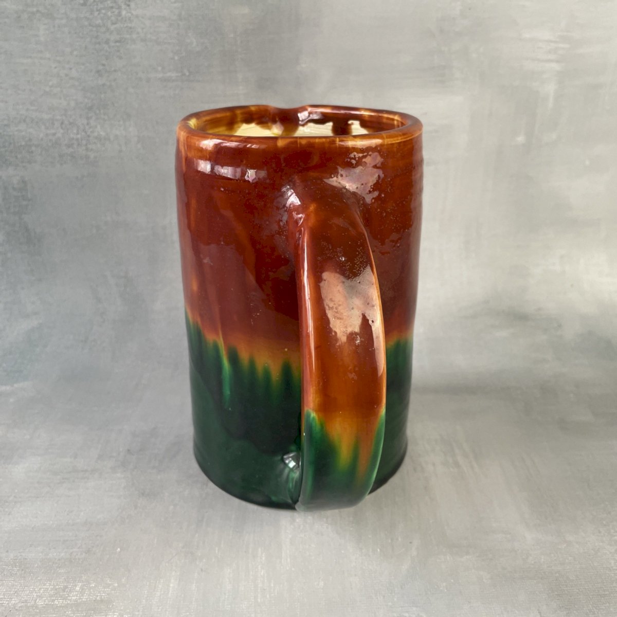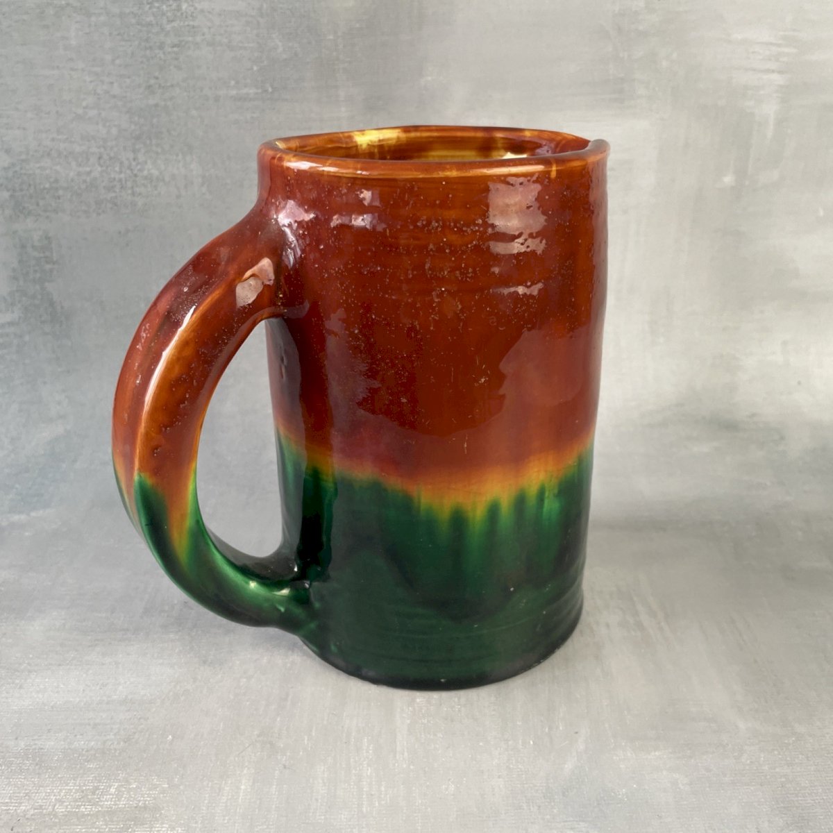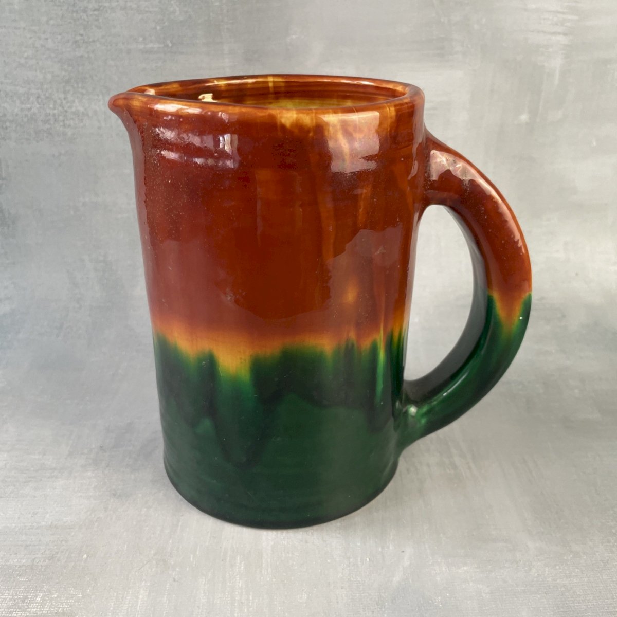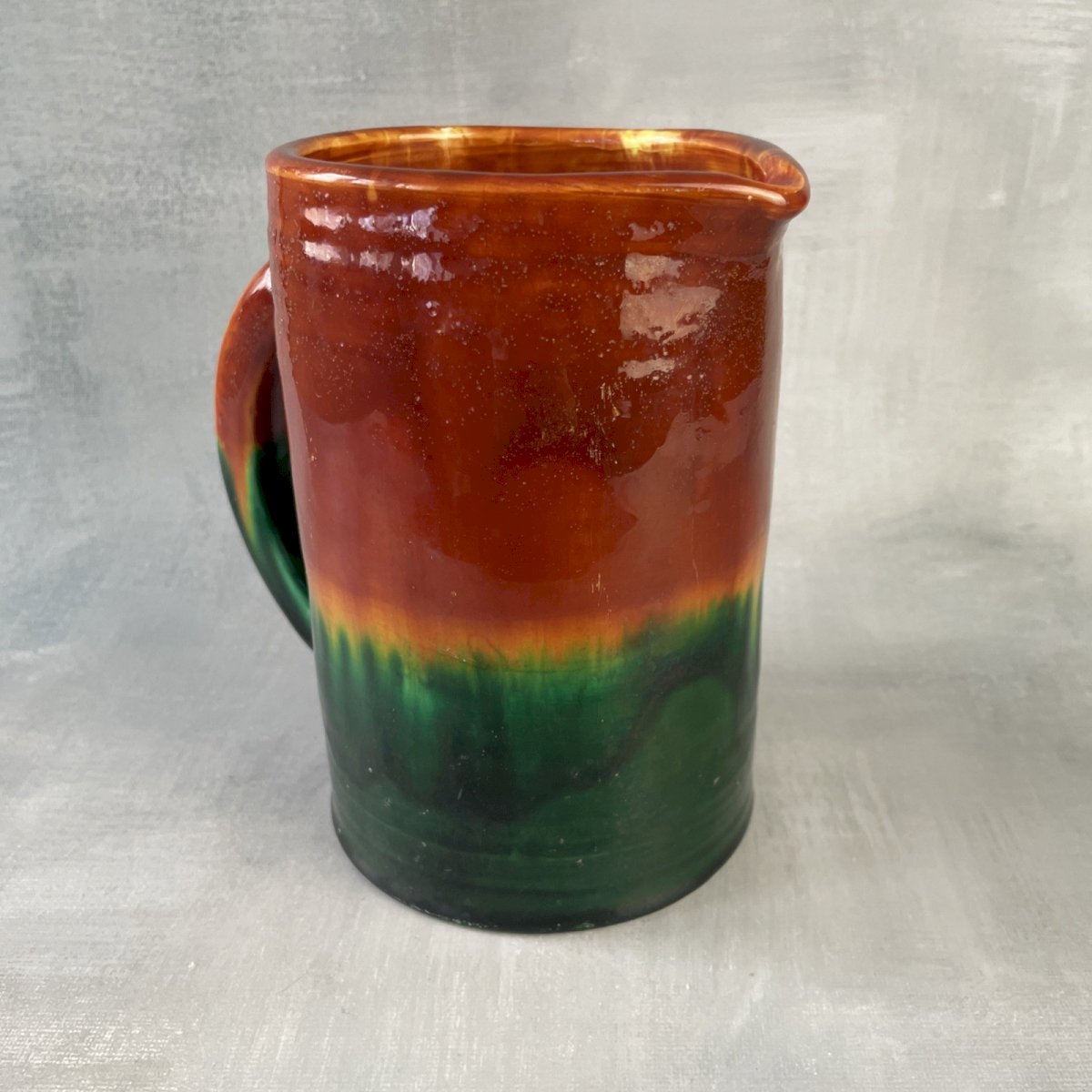 Pichet broc cruche verseuse céramique ocre et vert vintage Haut.~16cm