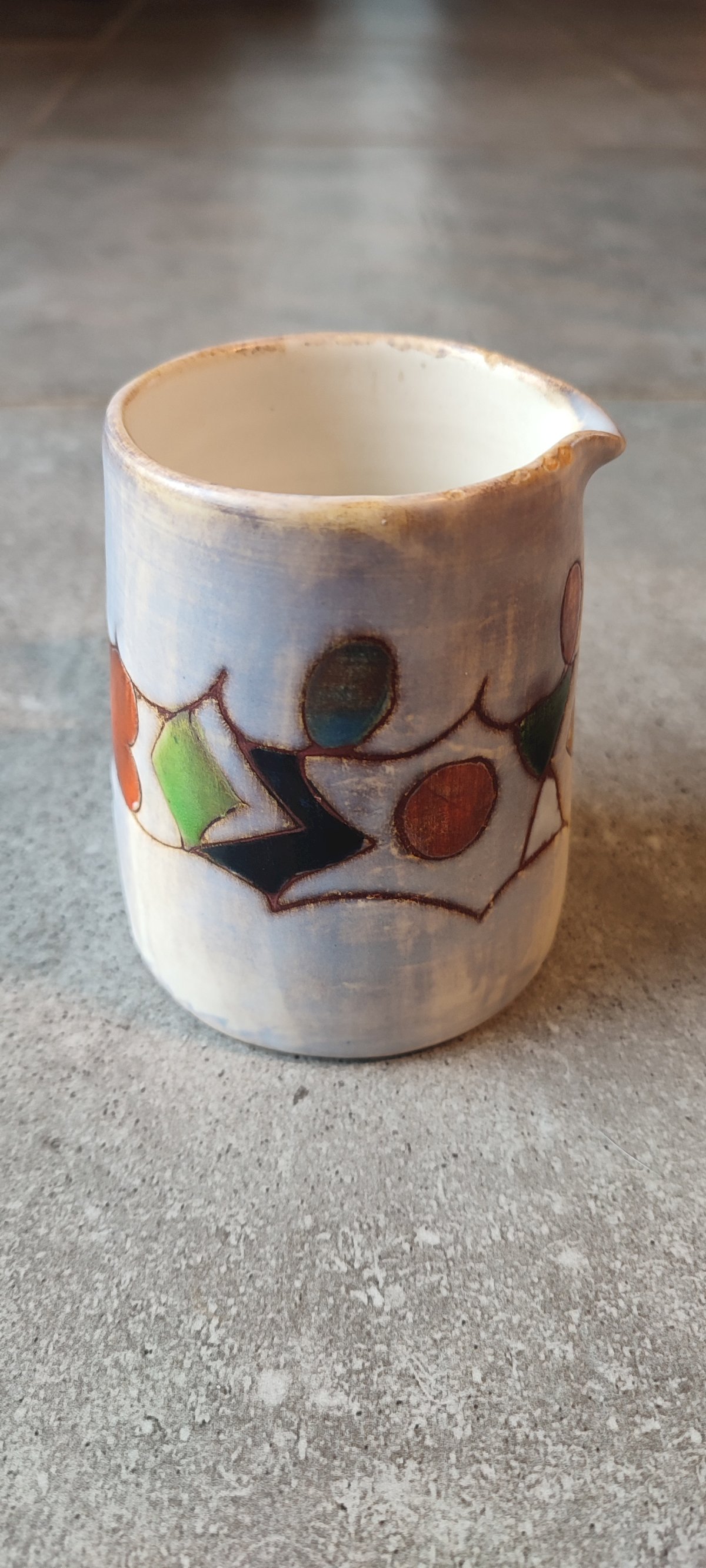 Pichet crémier en céramique signé Marie-Christine Treinen Beige/Multicolore Abstrait/Géométrique