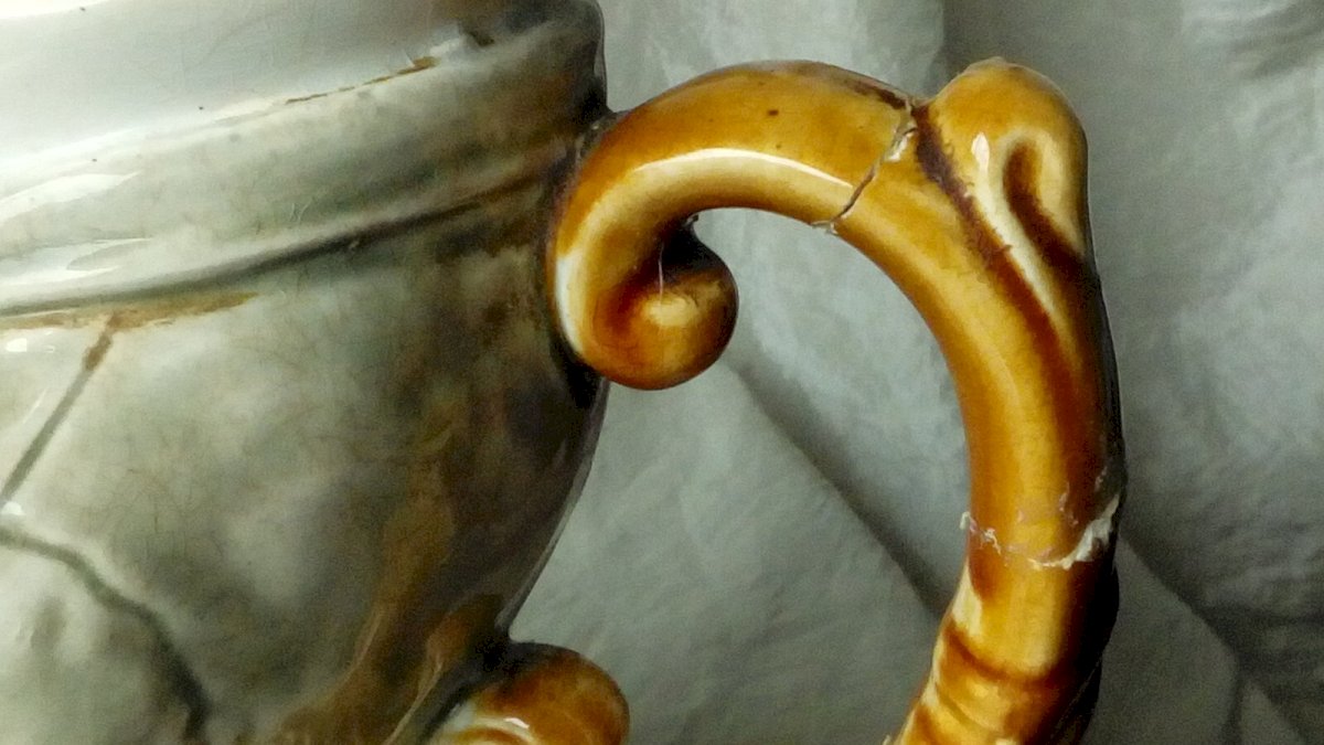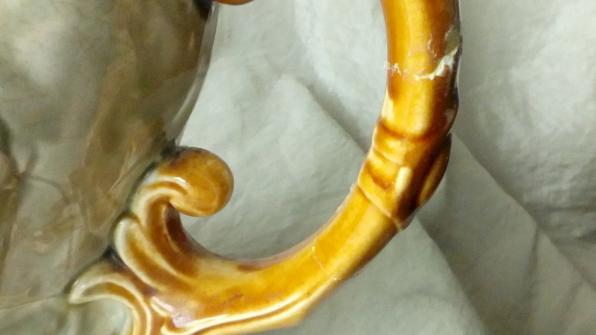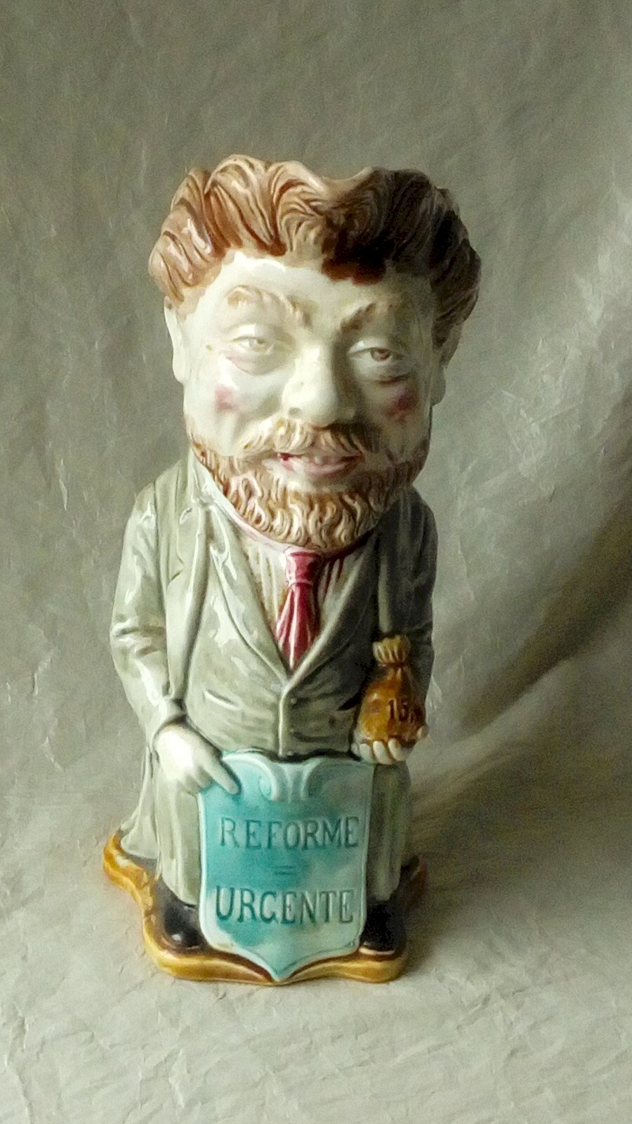 ANCIEN PICHET EN BARBOTINE FAIENCERIE D'ONNAING N°741 REFORME URGENTE DÉPUTÉ AUGUSTE BAUDON 1848-1913 HAUTEUR 27.50 cm LARGEUR 17 cm DU BEC VERSEUR A L'ANSE L'ANSE A ÉTÉ RECOLLÉE VISIBLE SUR LES PHOTOS Marque:ONNAING Origine:Nord de la France