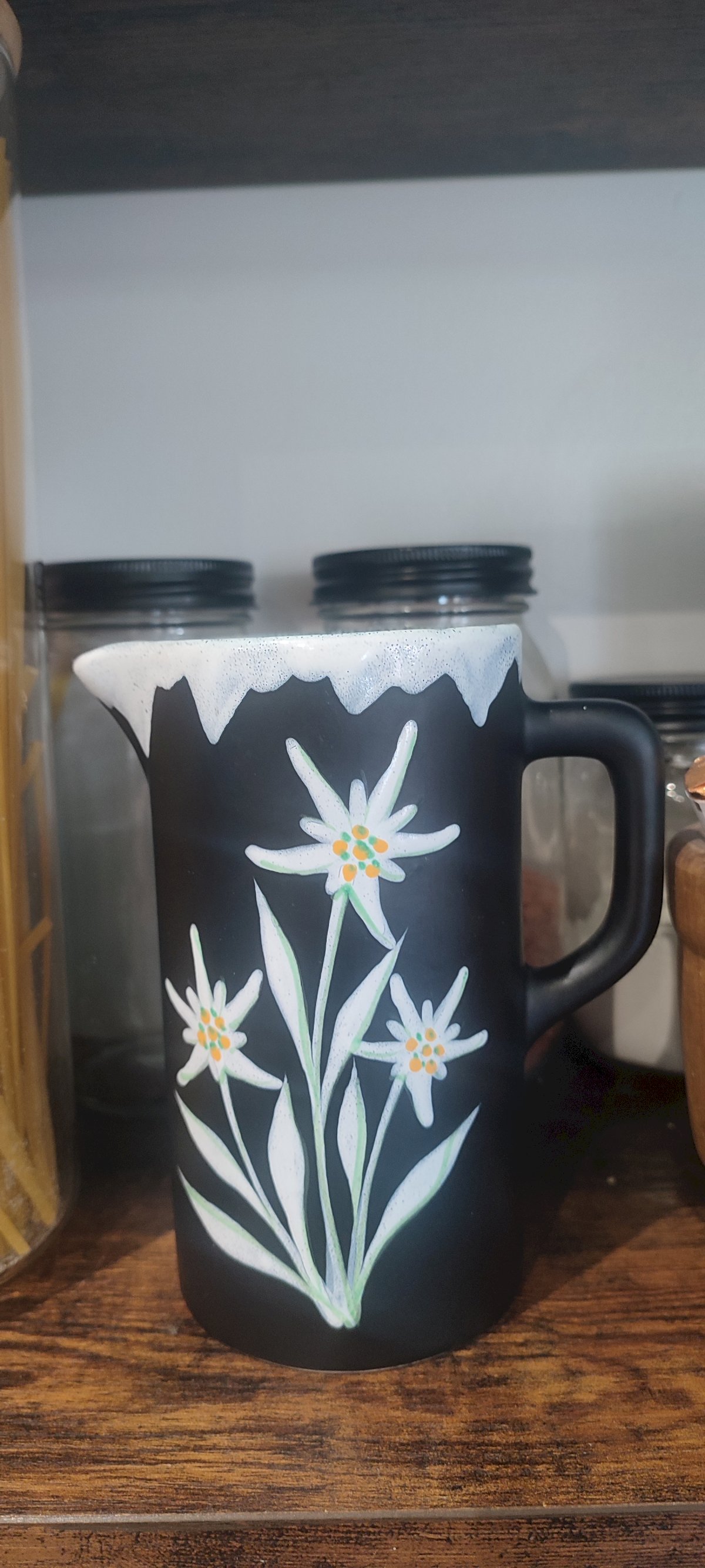 Pichet Gabriel Fourmaintraux (GF) Modèle Edelweiss Blanc/Noir Faïence Floral,Végétal