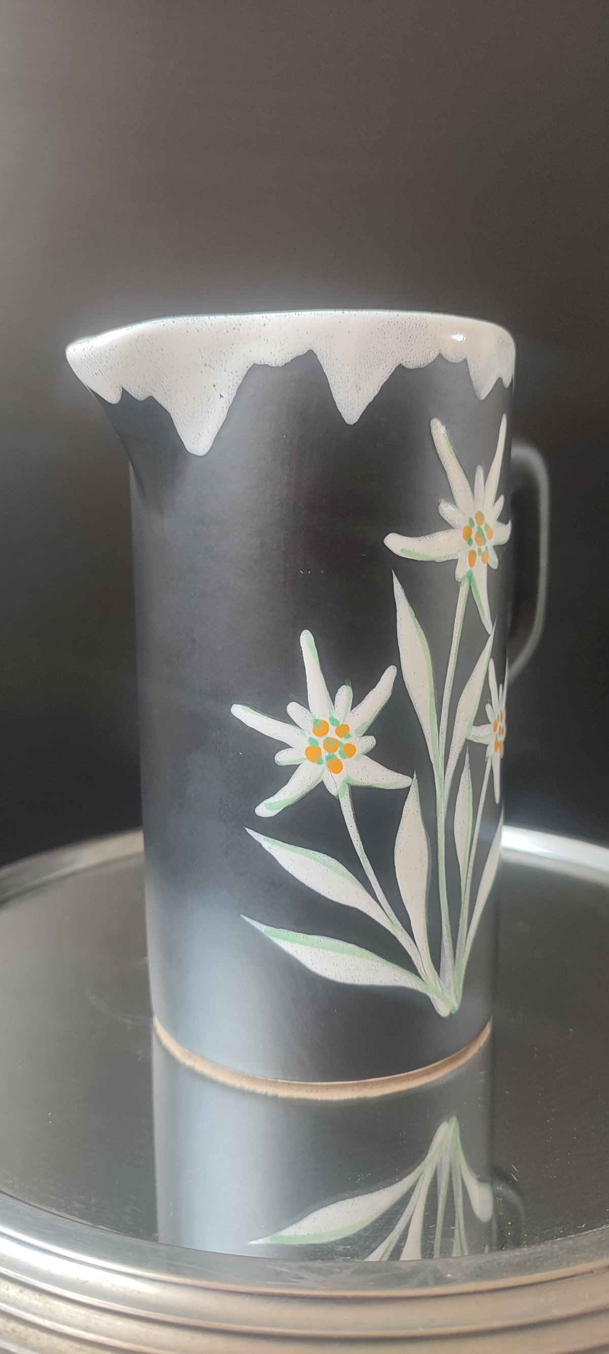 ​Il s'agit du modèle Edelweiss, orné de fleurs stylisées en léger relief sur un fond noir mat. L'objet est en très bon état, sans aucun éclat ni fêlure.