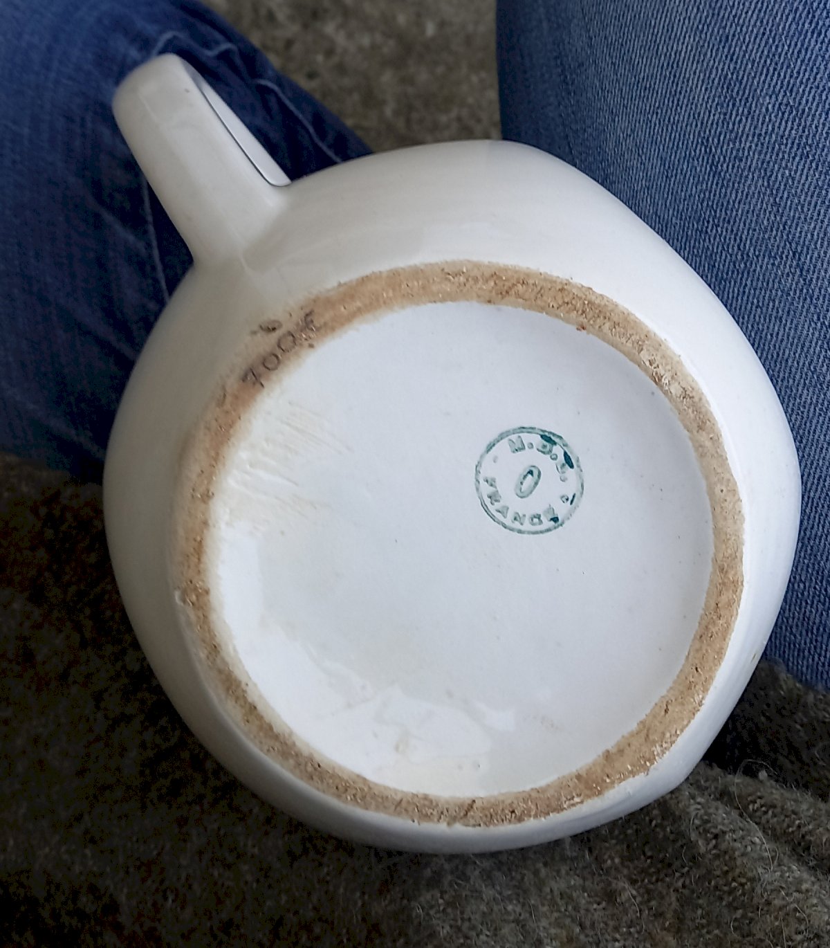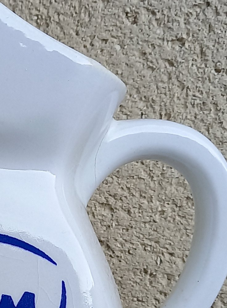 Aspect craquelé, en bon état, seul défaut une fissure fine au niveau de l'anse d'un seul côté