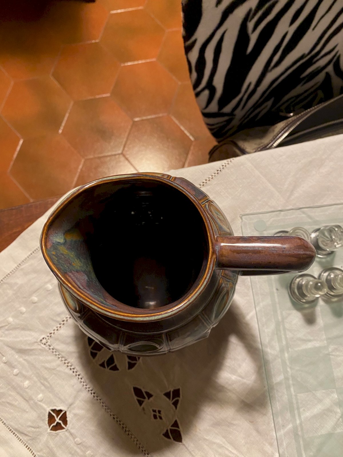 beau ancien pichet à coulure marron signé denbac en bon etat