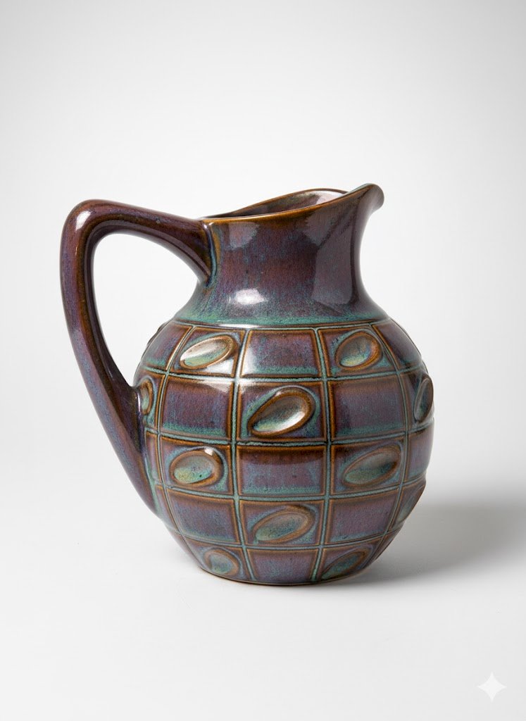 Pichet signé Denbac vintage, signé, numéroté, époque art nouveau. Multicolore/Violet