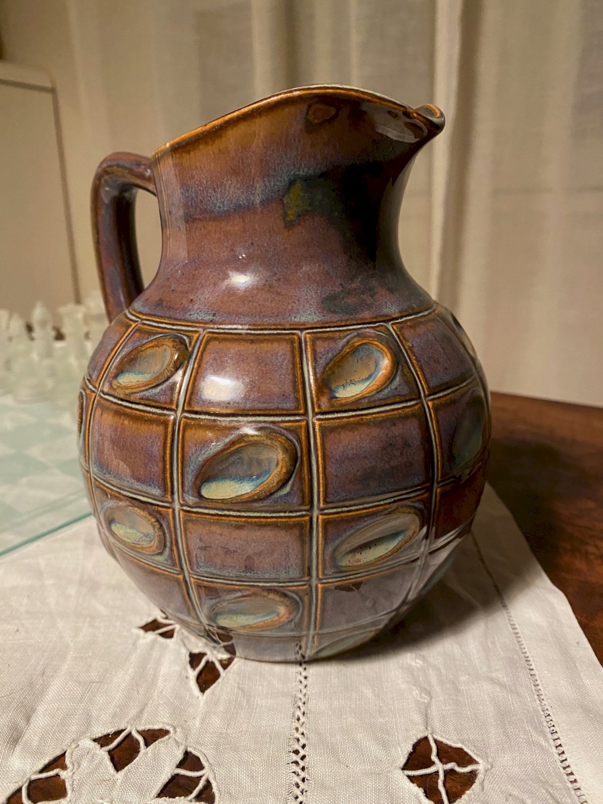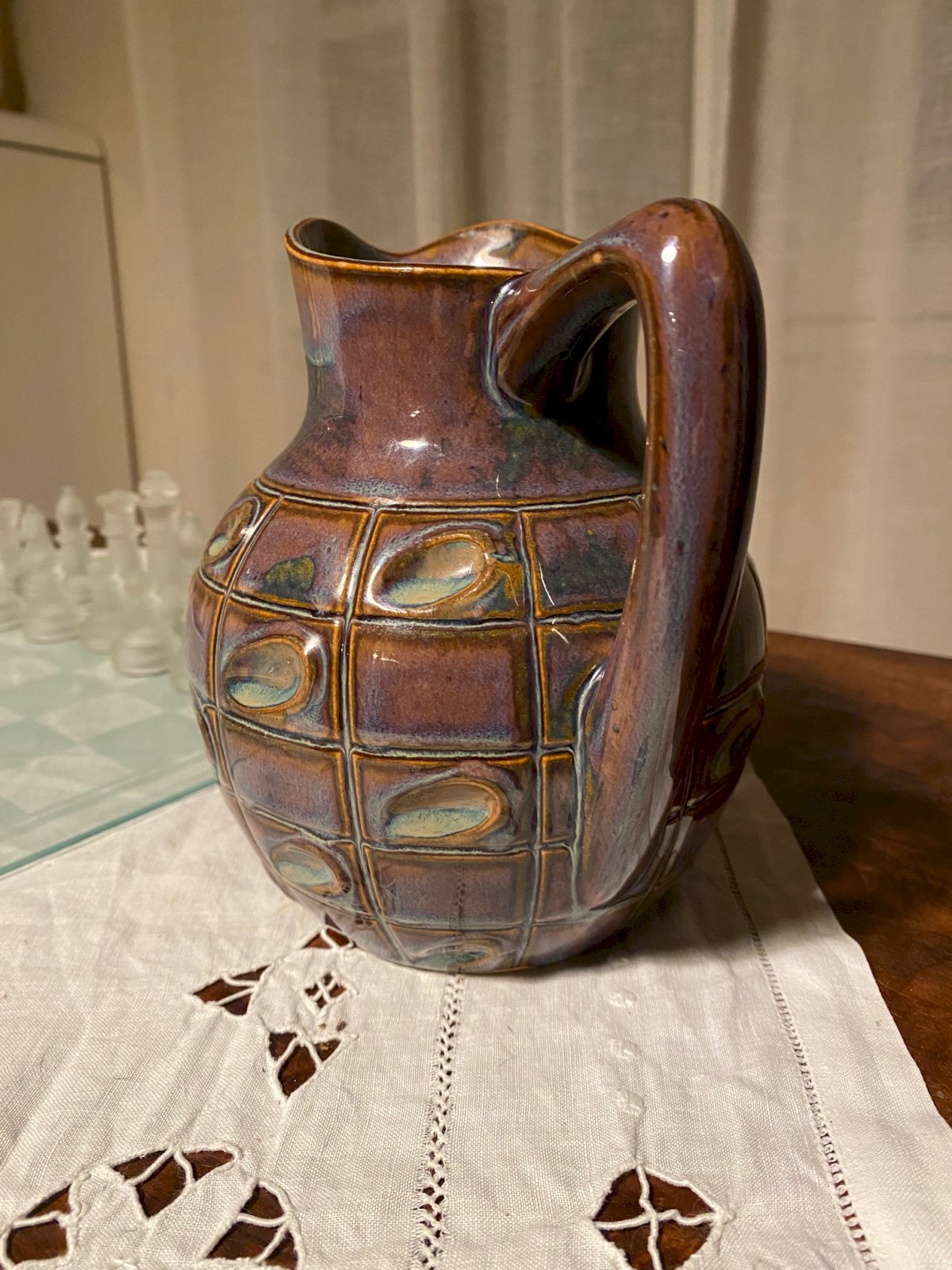 Ancien pichet d'époque art déco céramique émaillée et irisée signé RAMBERVILLERS
