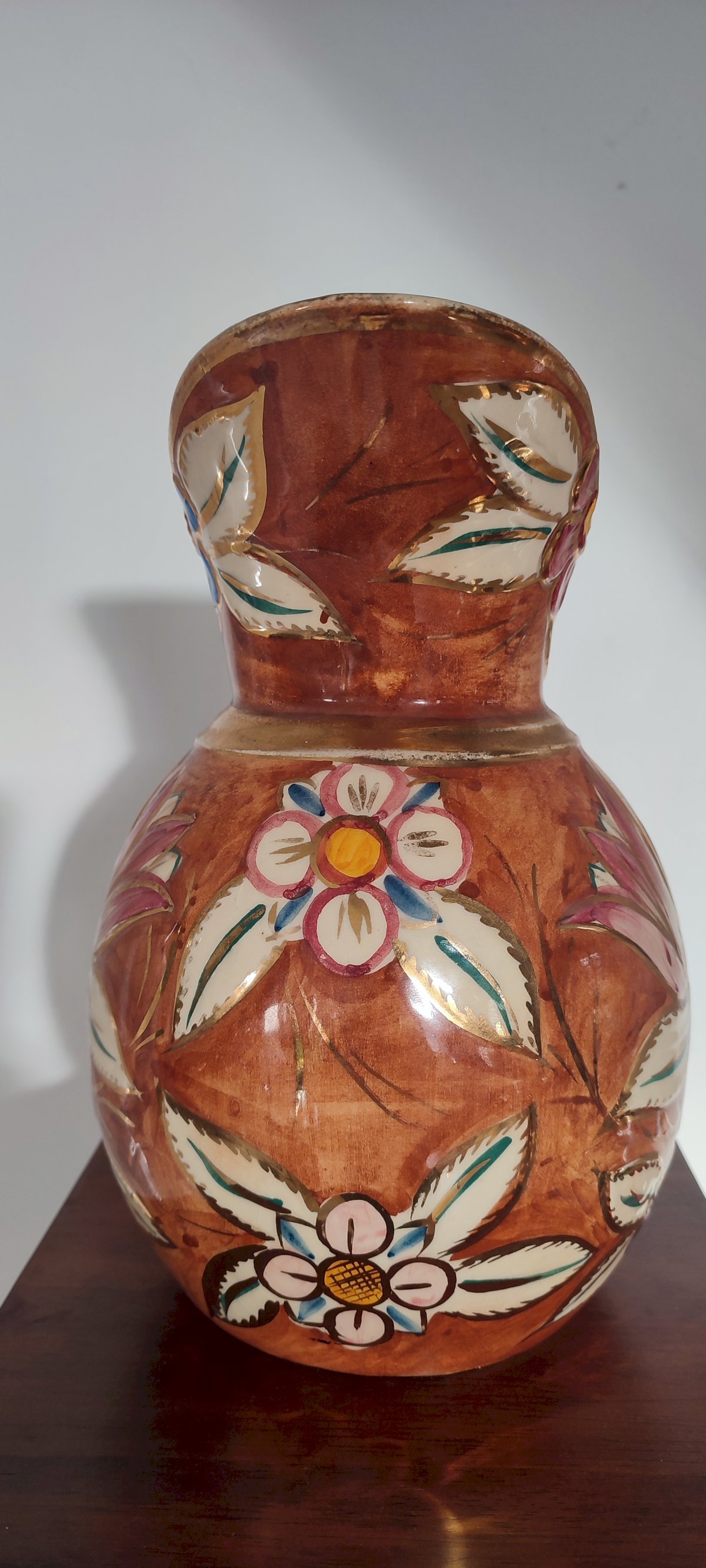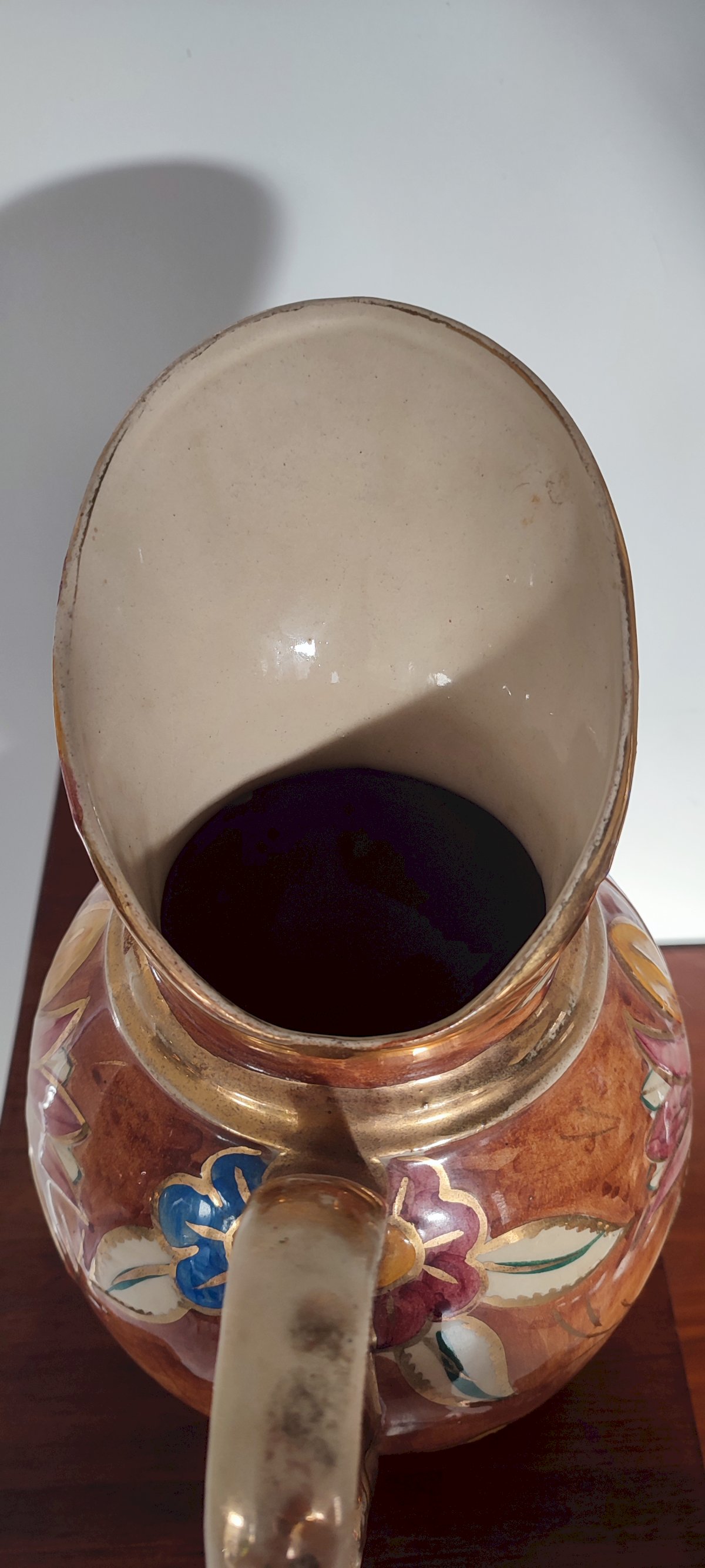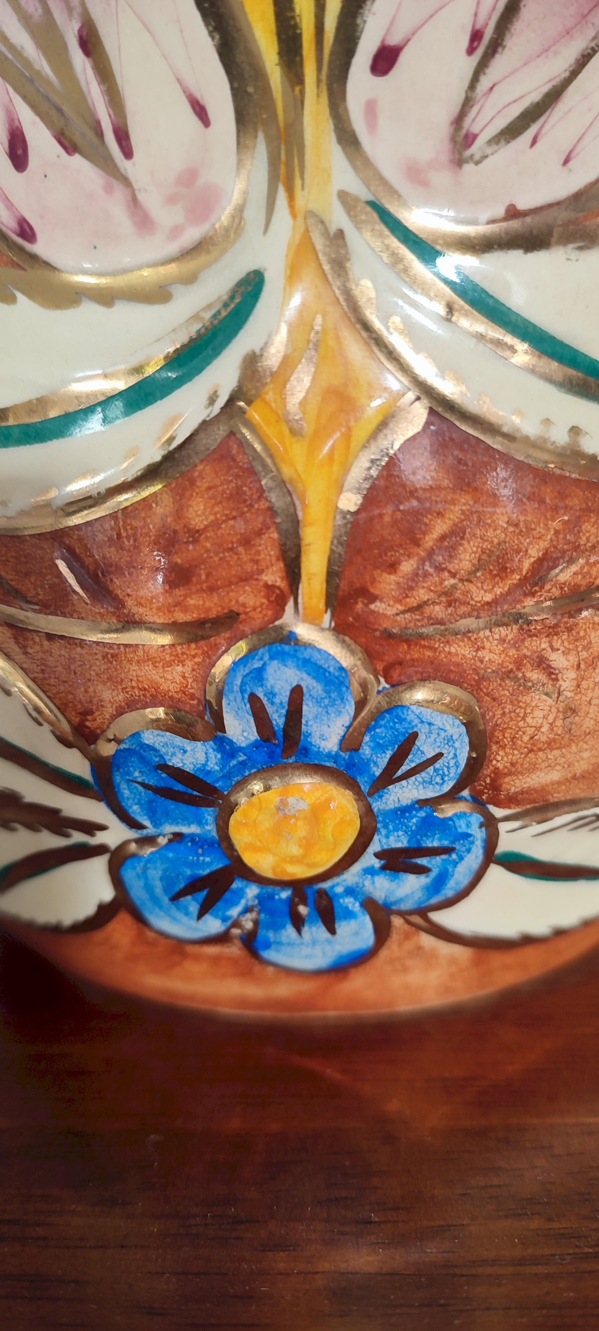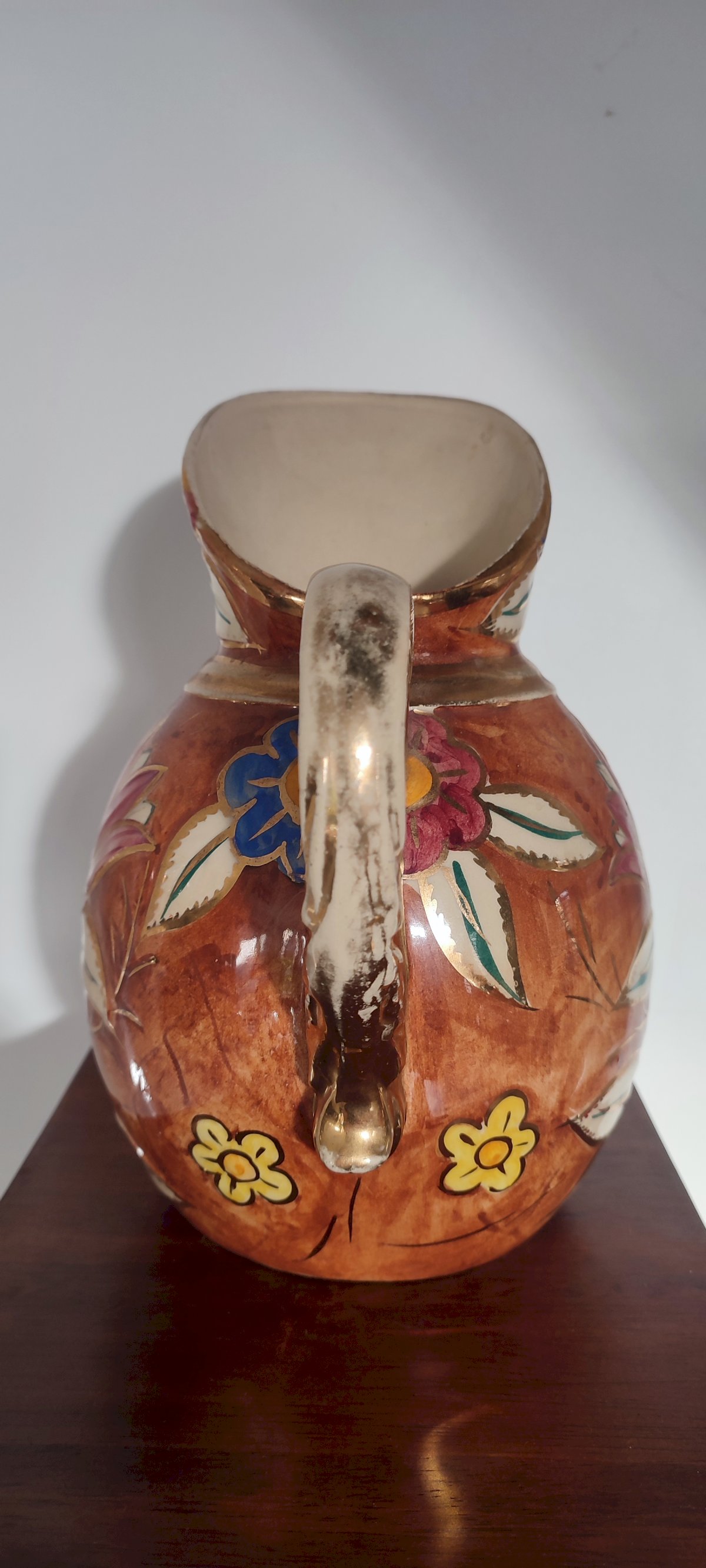 Pichet vintage en céramique décor main Doré/Multicolore Floral,Végétal Céramique vintage