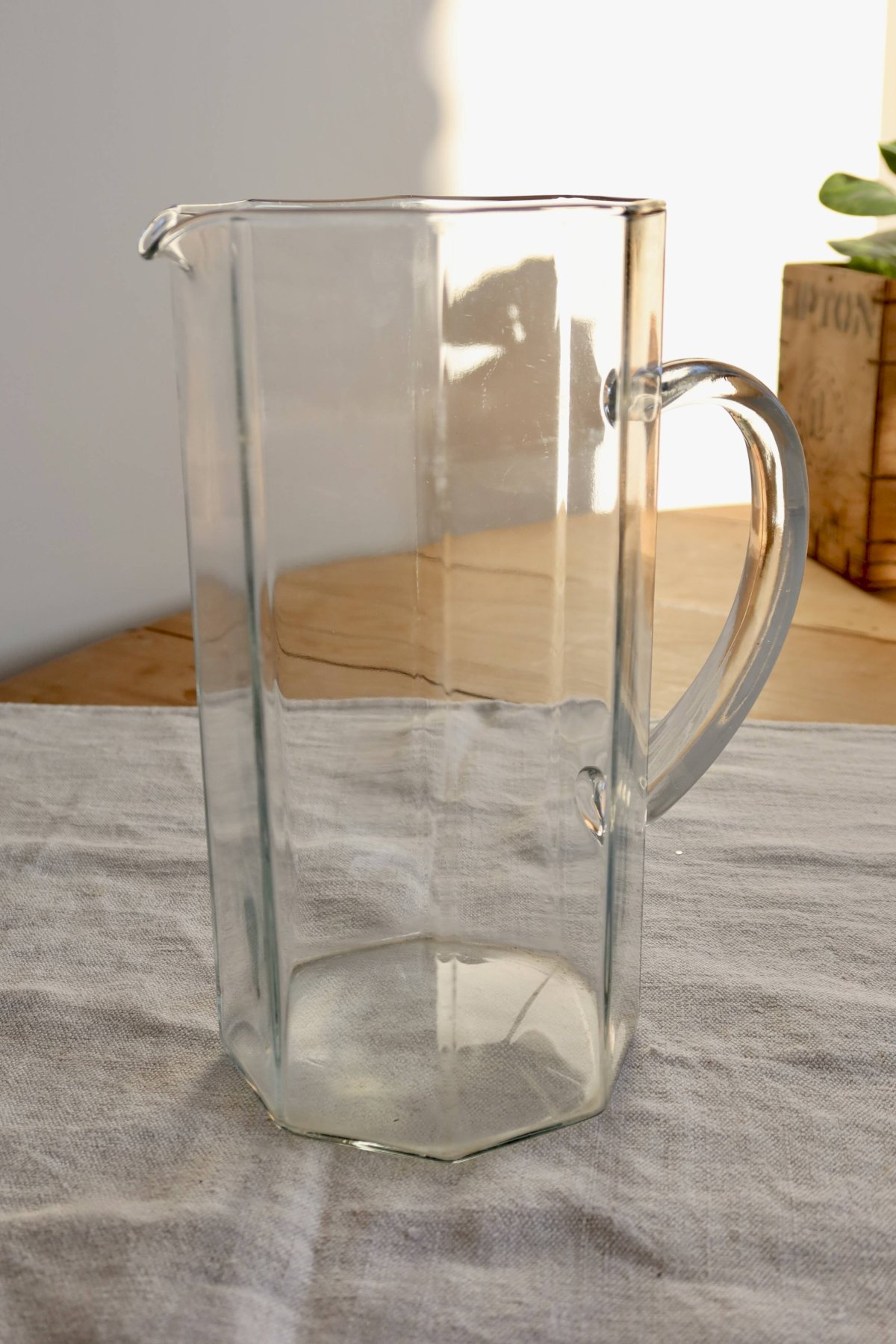 Pichet vintage verre transparent forme octogonale