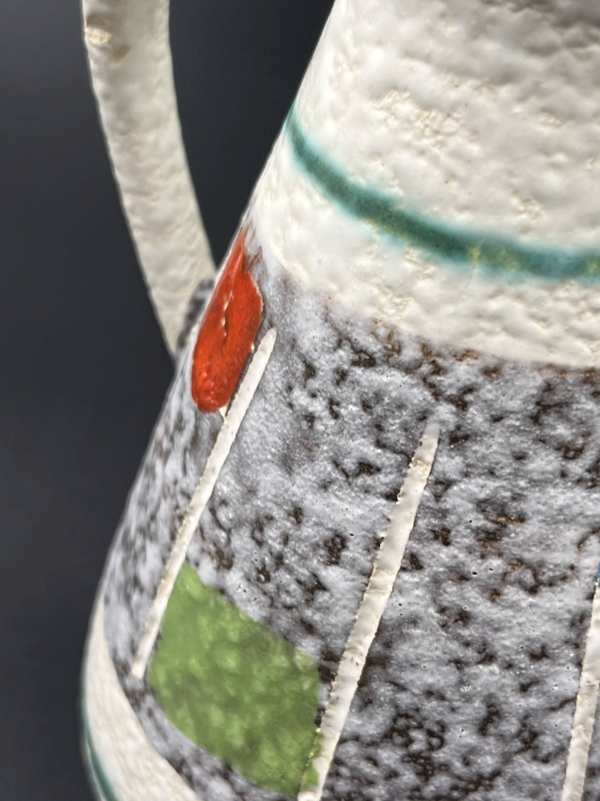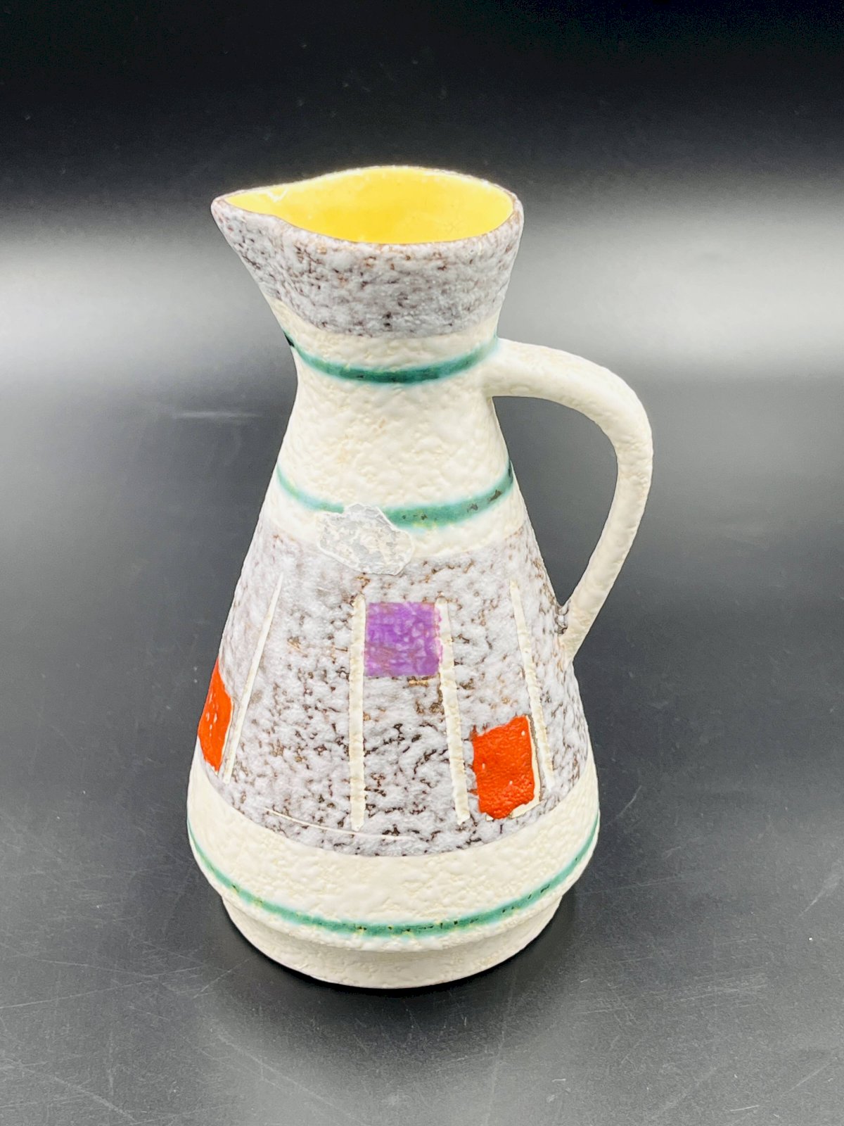 Découvrez ce magnifique pichet en céramique de la marque Bay, une pièce emblématique de la production allemande de l'époque.