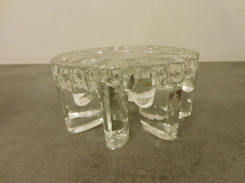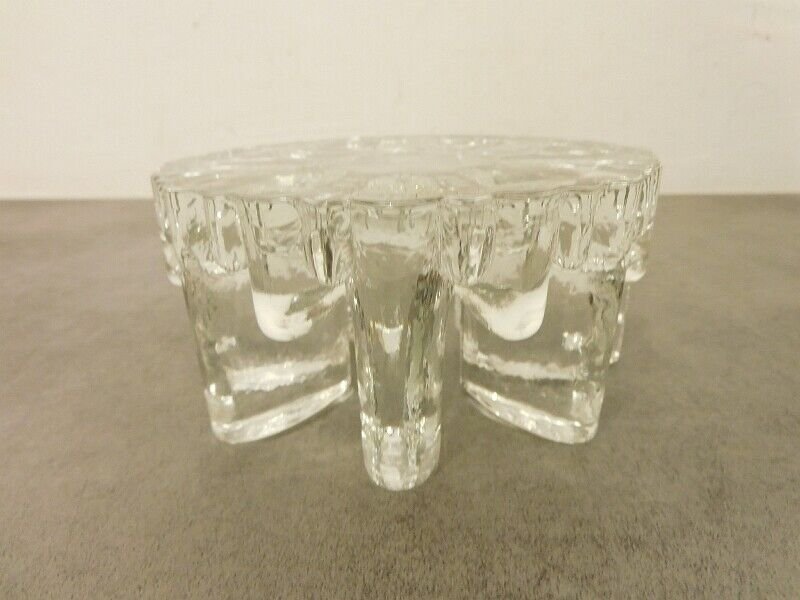 jolie pièce en verre décorative elle est en très bon état je ne connais pas son utilité elle mesure 6 cm de haut sur 13 cm de diamètre   Matière:Verre
