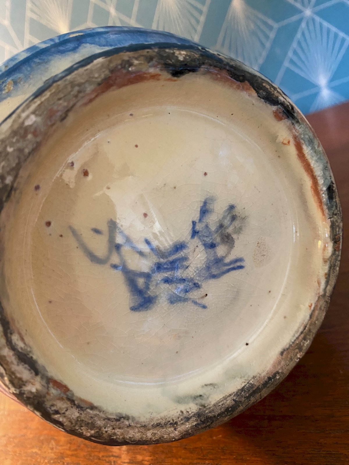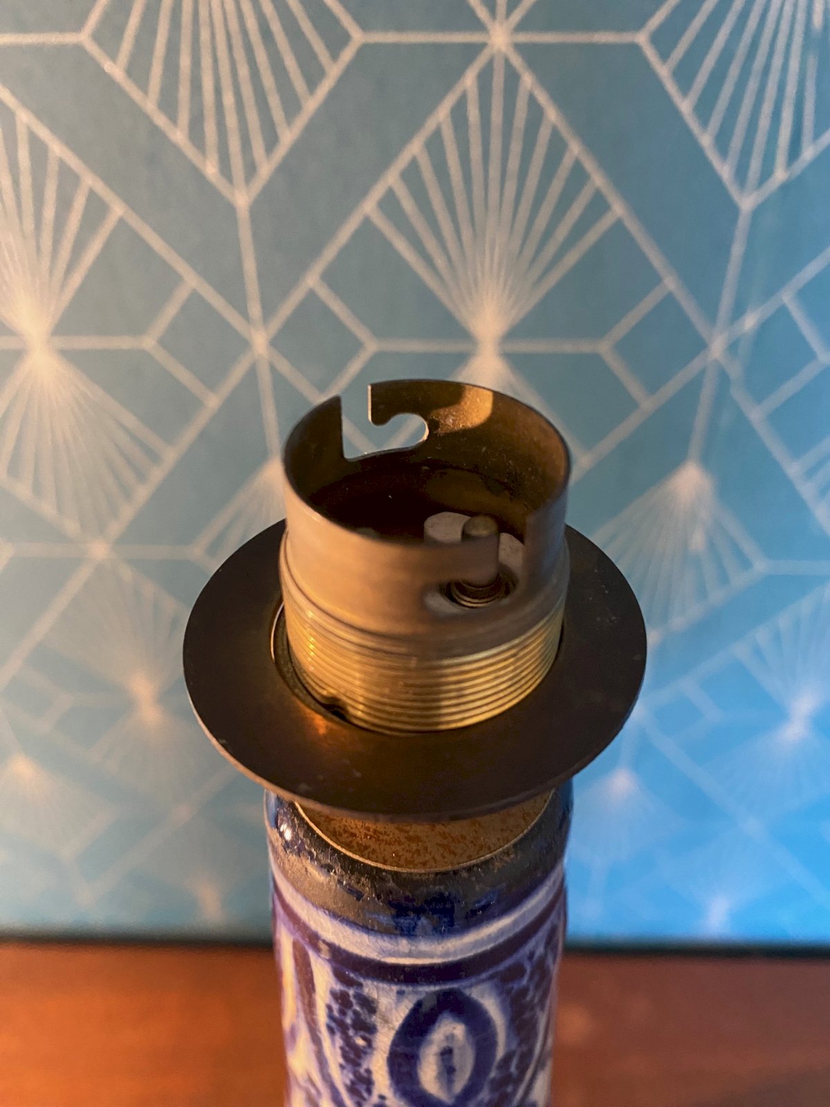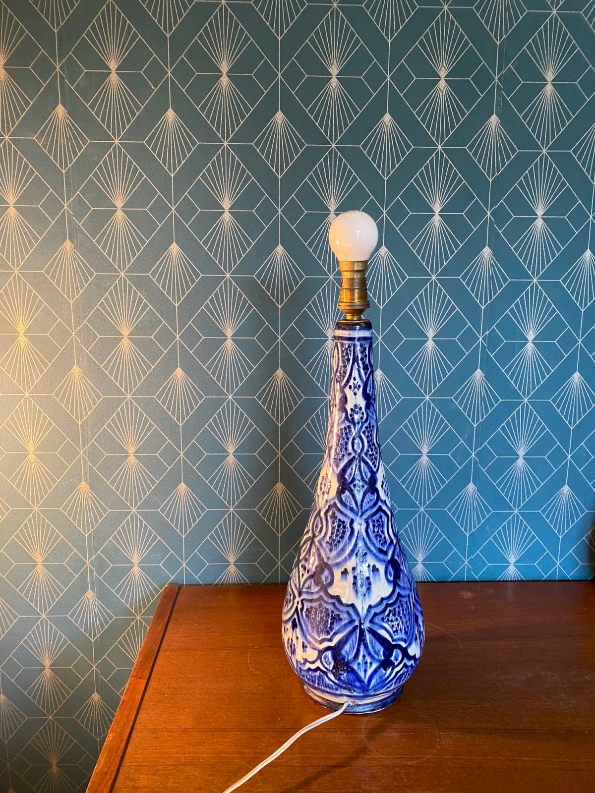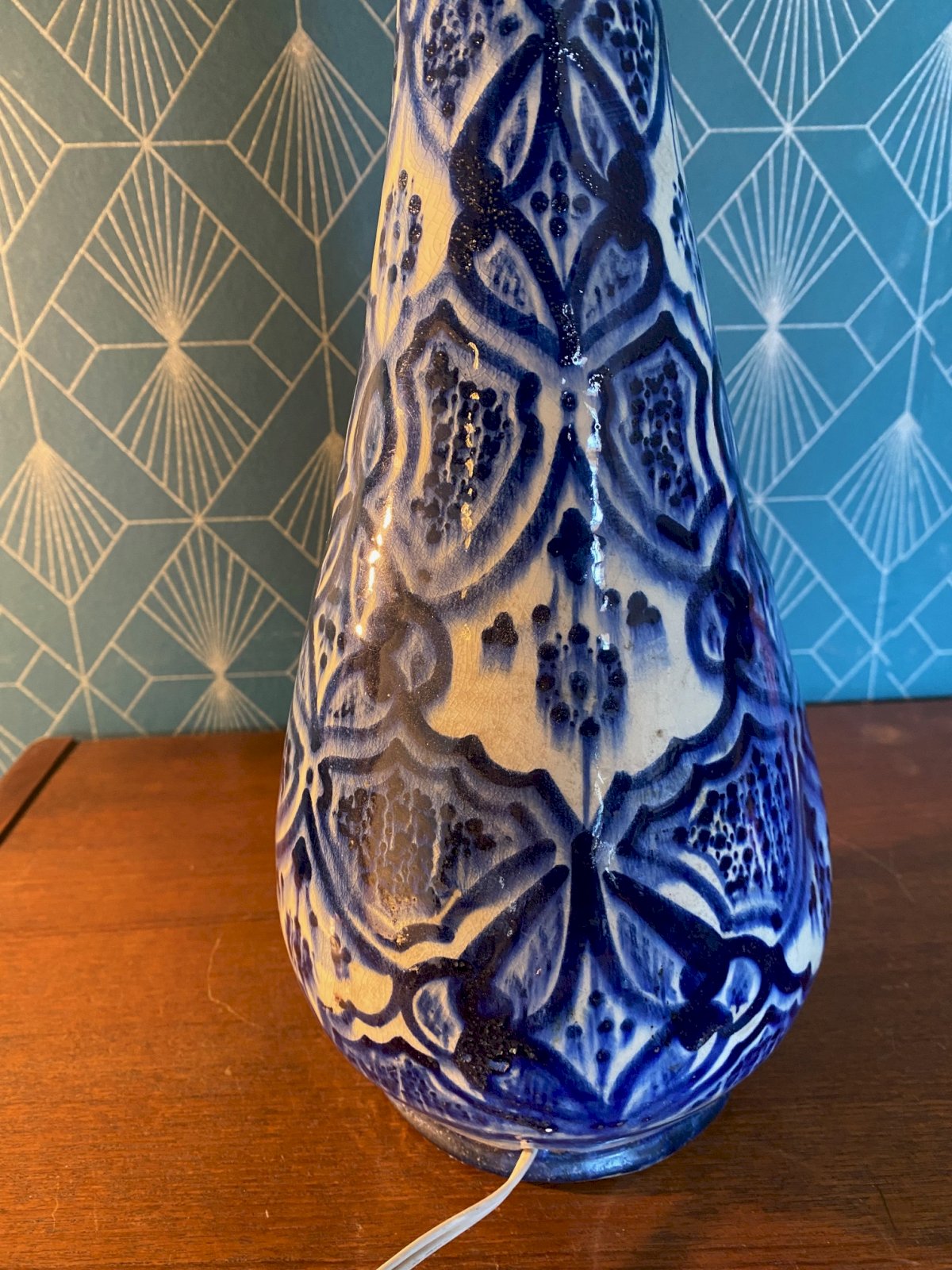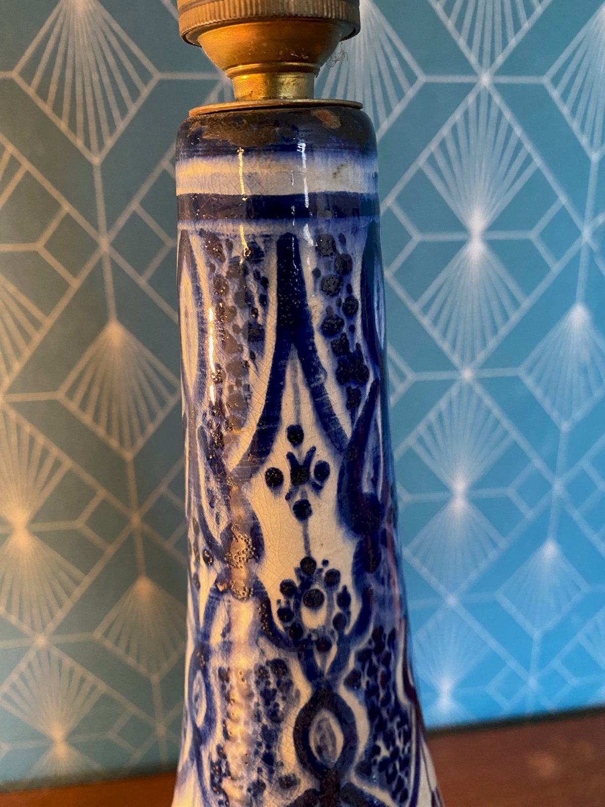 Pied de lampe ancienne, signée au revers, Syrie. Début XXème. Vintage Bleu Terrecuite