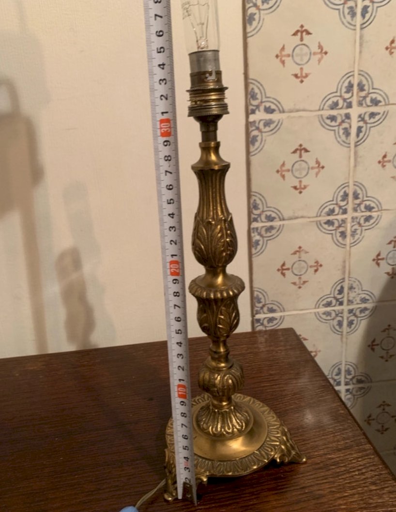 PIED DE LAMPE EN BOIS DORE et BOULE EN OPALINE PEINTE D4UNE ROSE ET CORPS EN LAITON DUNE PAIRE