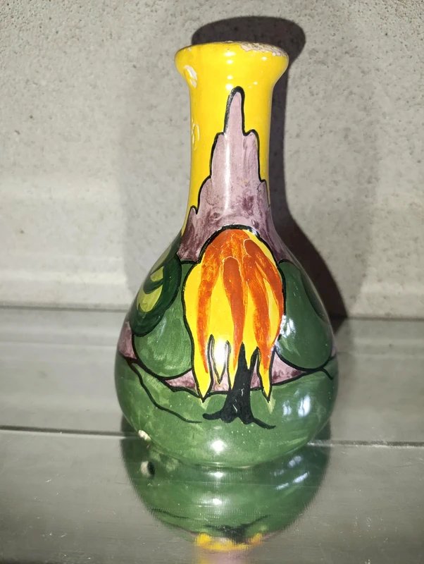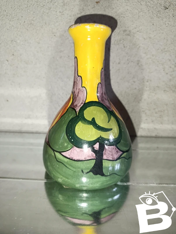 pied de lampe jules verlingue pour desvres en bon etat général quelques manques de glacage d'origine et au niveau du col surement du a une ancienne collerette mettalique pour tenir la douille trou en bas d'origine hauteur 18.5cm style floral original