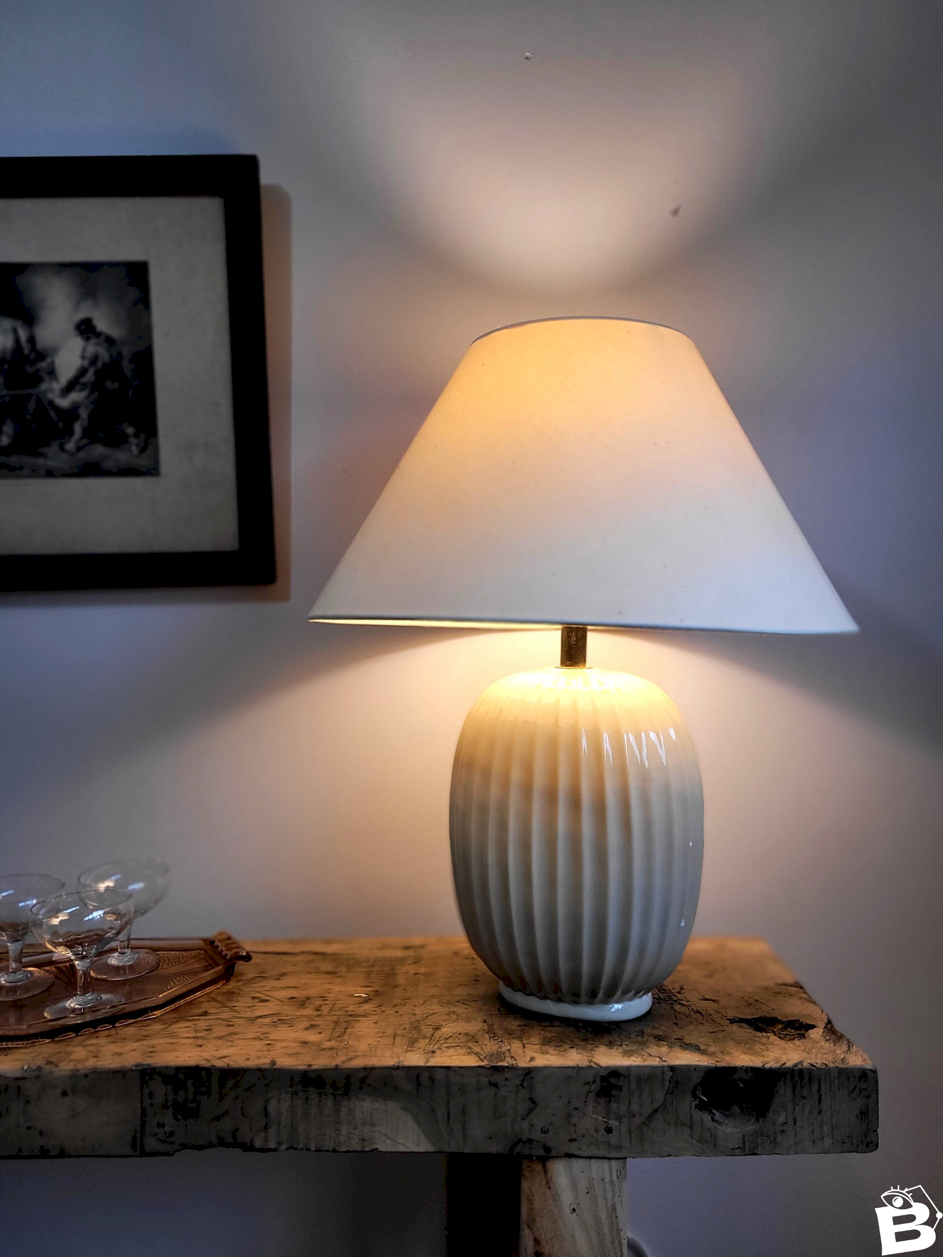 Pied de lampe moderniste en faïence Contemporain Beige Céramique