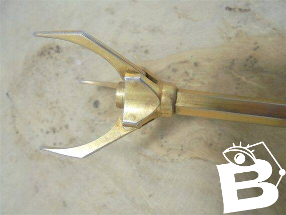 Pince à glaçons de couleur or, usée, laissant apparaître la couleur du métal.Longueur: 12.5 cm.Poids: 36 g.