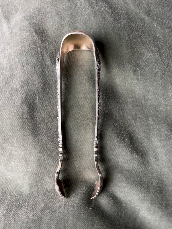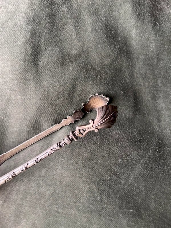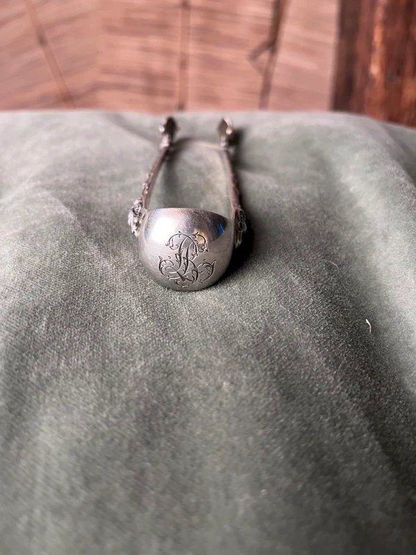 Pince à sucre en argent massif XIXe, finement ciselée et monogrammée.