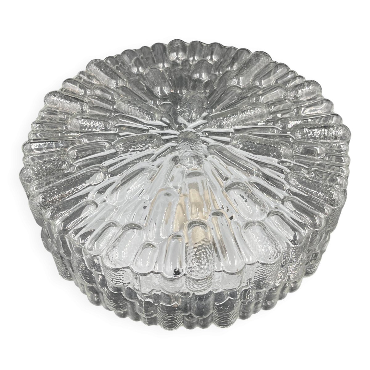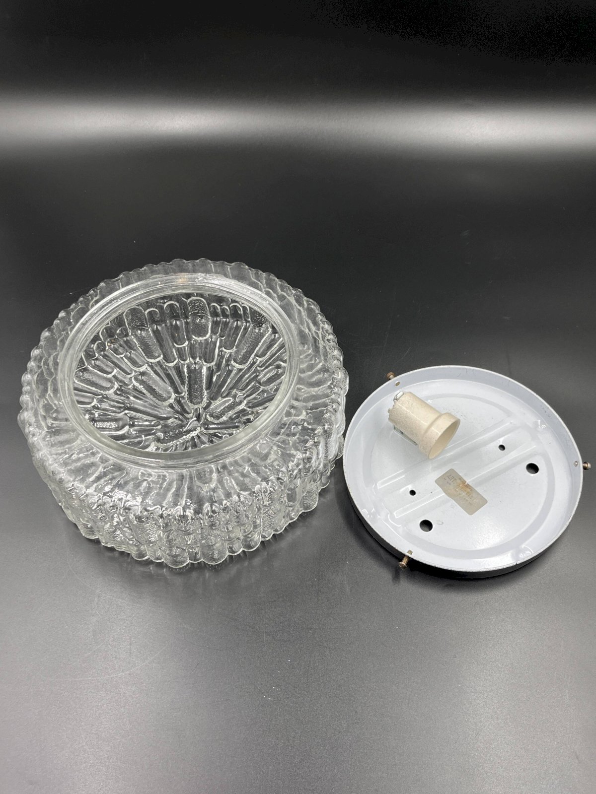 -PLAFONNIER LUSTRE MULLER Frères LUNEVILLE VERRE Pressé Moulé dépoli incolore D