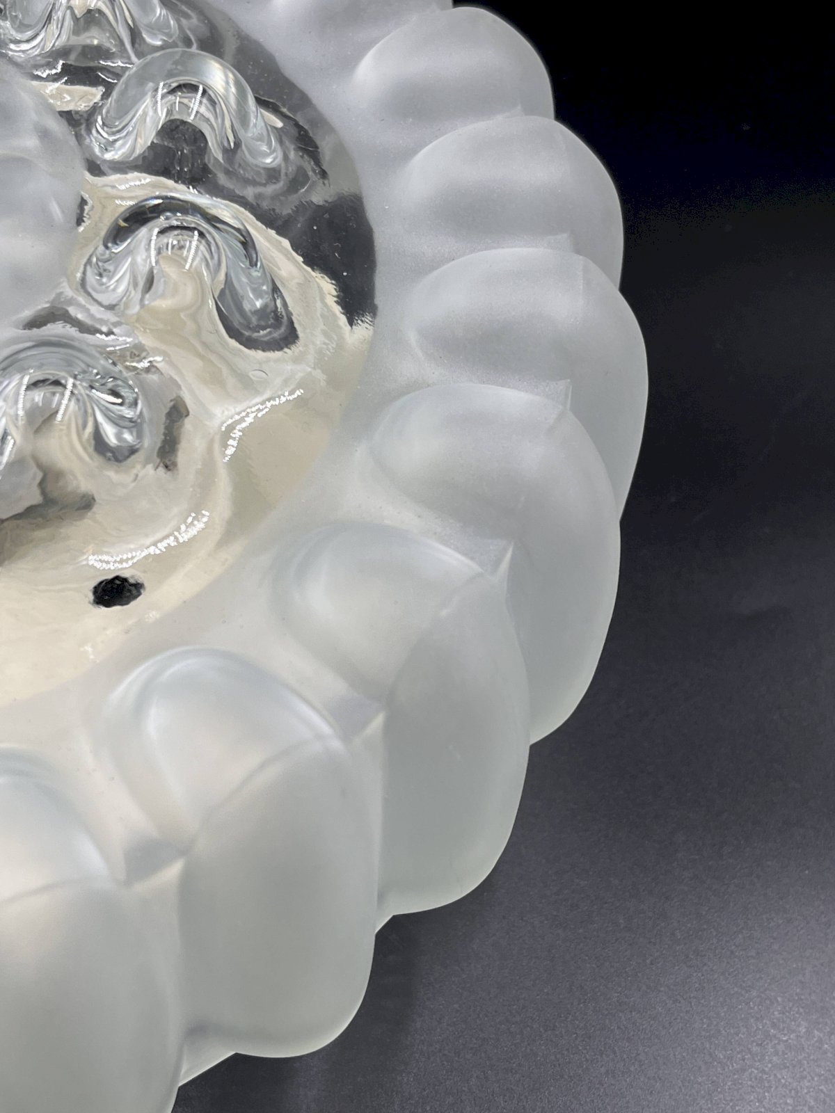 Ce luminaire en verre transparent et sablé est parfait pour illuminer votre espace avec élégance.- Design unique : Le verre travaillé de manière artistique crée un jeu de lumière captivant.- Matériaux de qualité : Fabriqué en verre et métal, ce plafonnier est aussi durable que stylé.- Style intemporel : Son allure vintage s'intègre facilement dans divers décors.Ne manquez pas l'occasion de donner un coup de frais à votre pièce avec ce plafonnier exceptionnel.