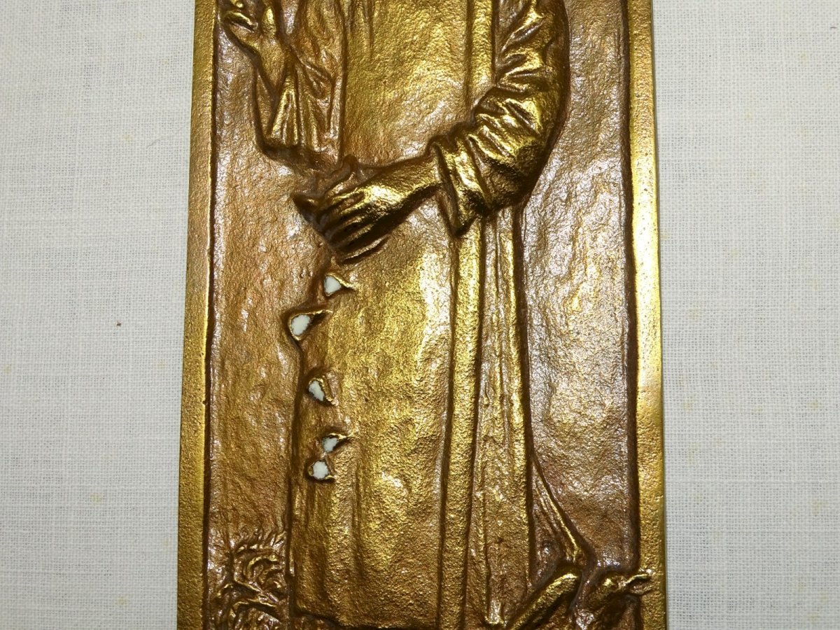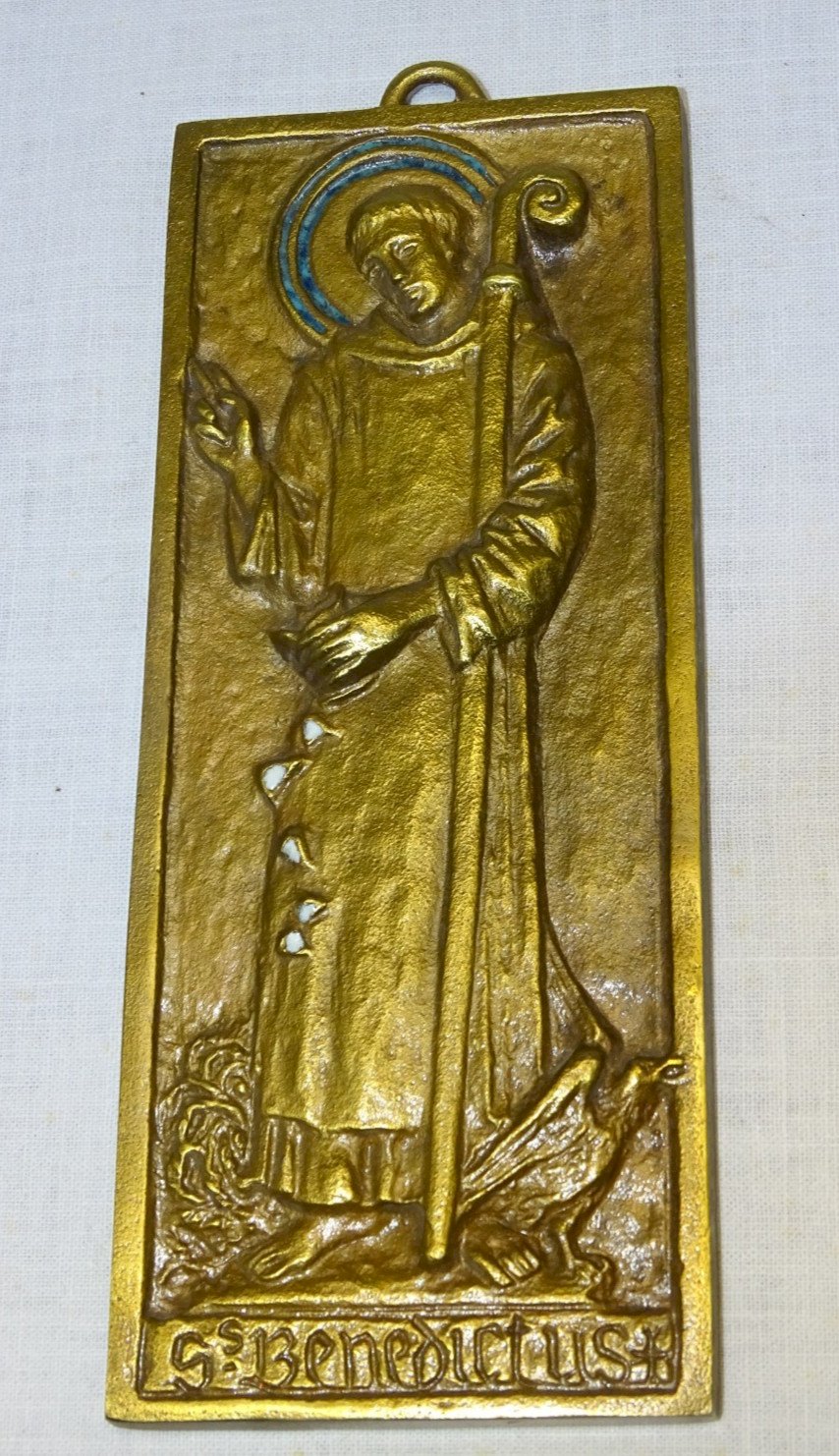 -PLAQUE BRONZE MURAL DOMINIQUE PIECHAUD SAINT BENEDICTUS Inspiration Médiévale