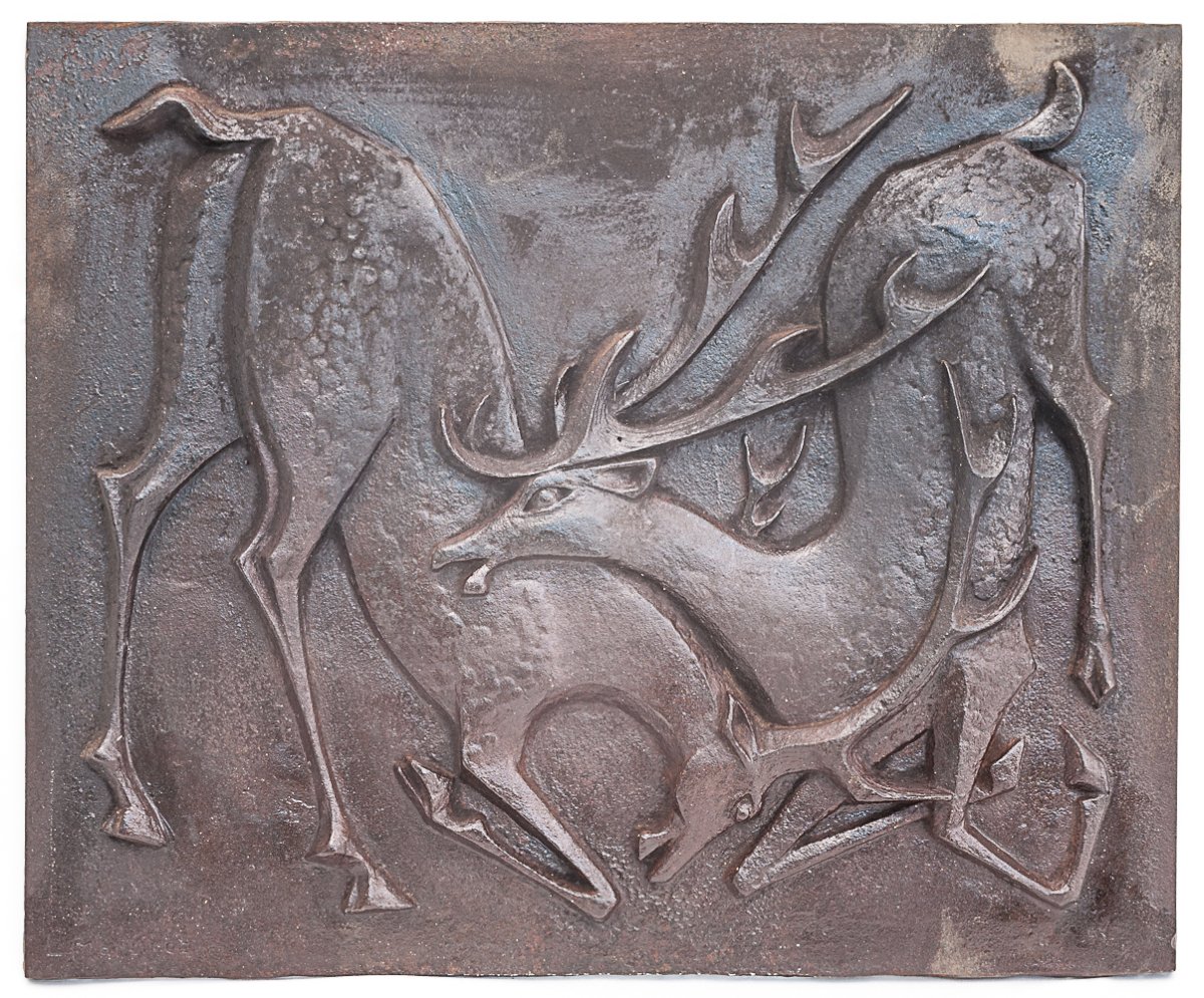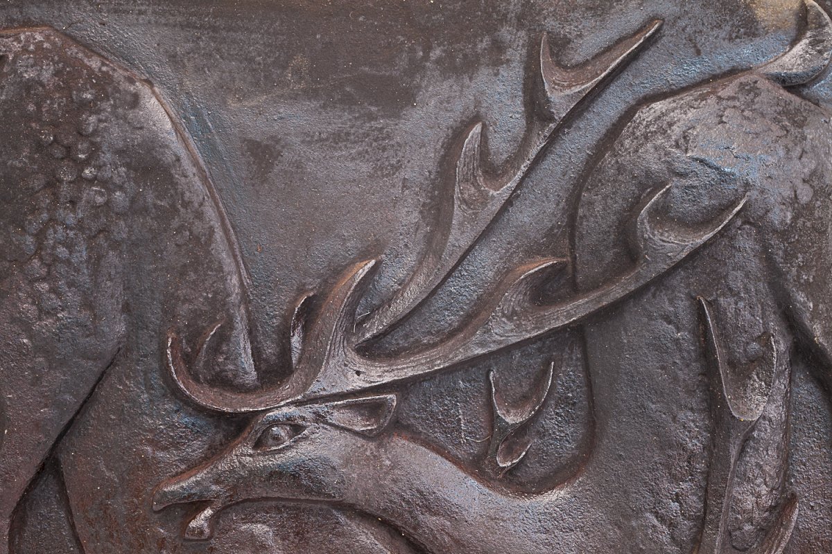 Plaque de cheminée en fonte.