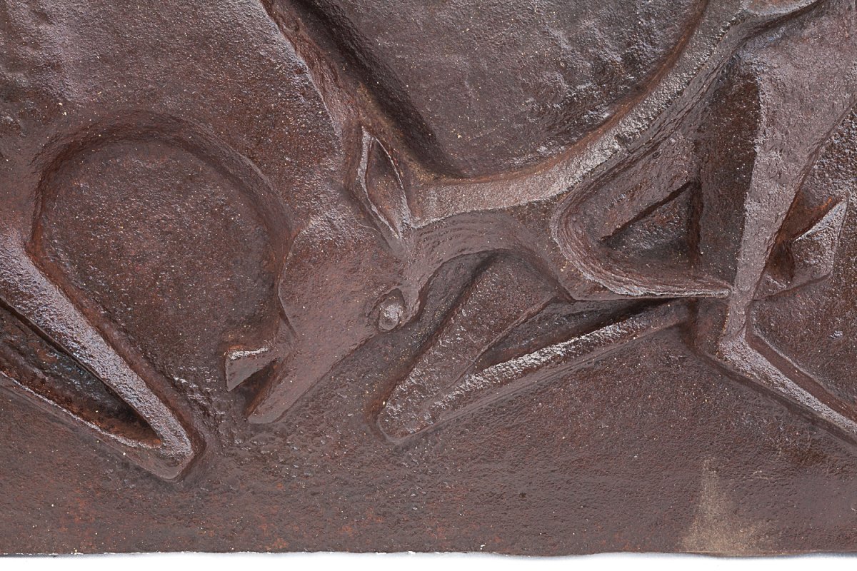 Plaque de cheminée cubisante décor de sanglier XXe L6026
