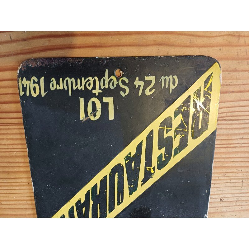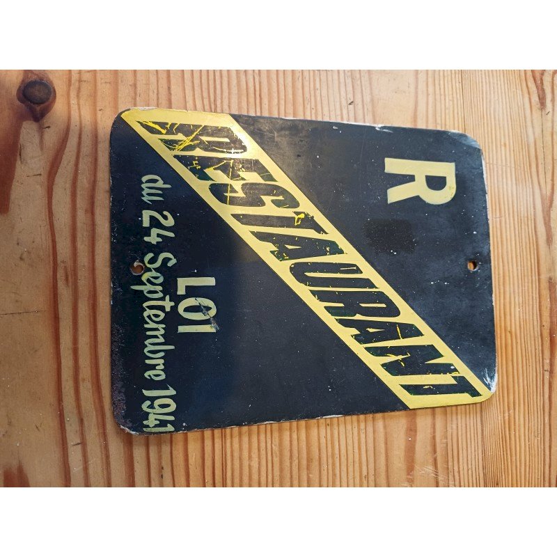 Plaque émaillée " Restaurant " 1941 dimensions : 20 cm sur 15 cm , poids : 350 g , trés bon ètat