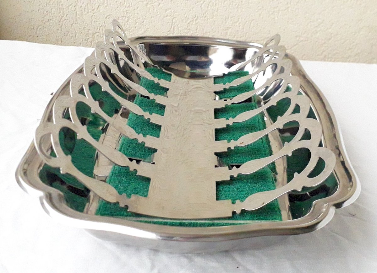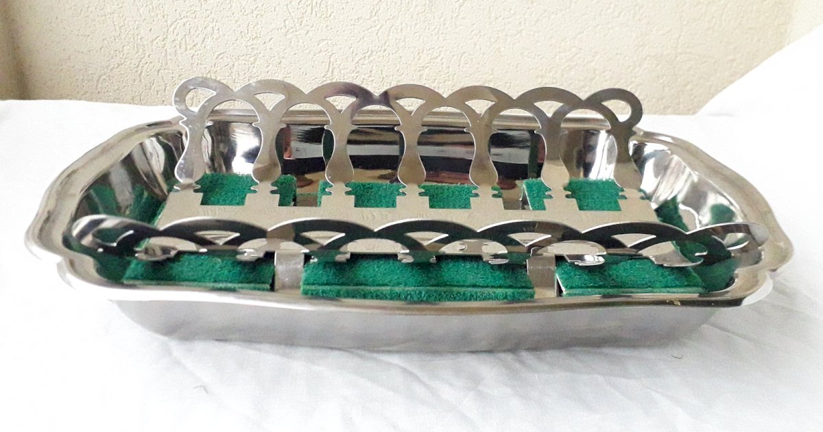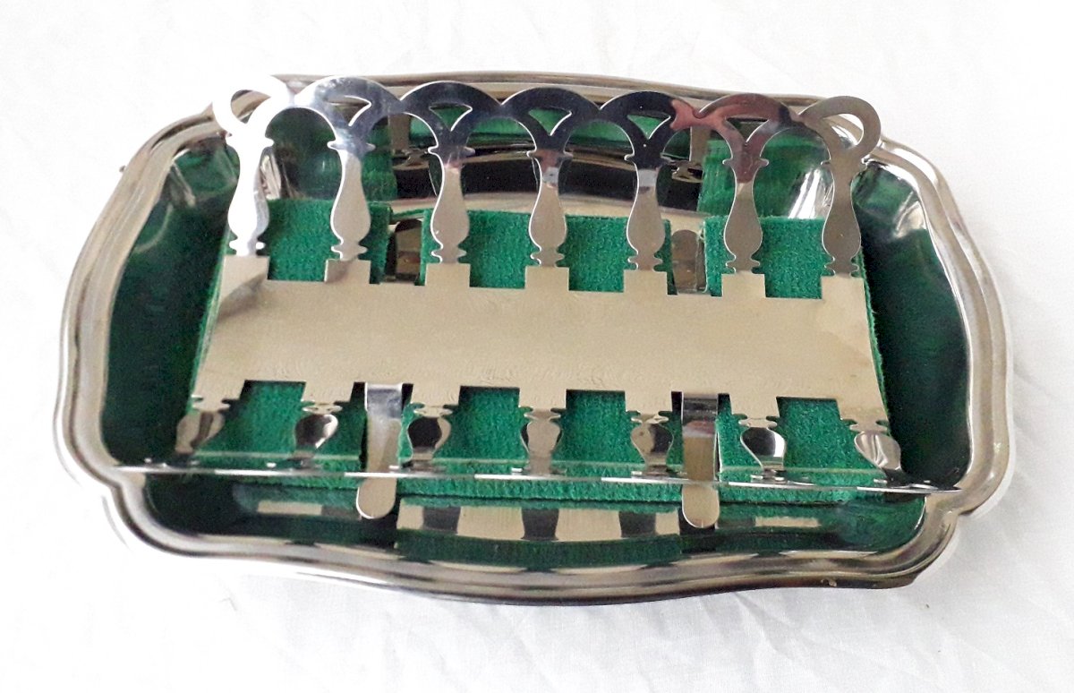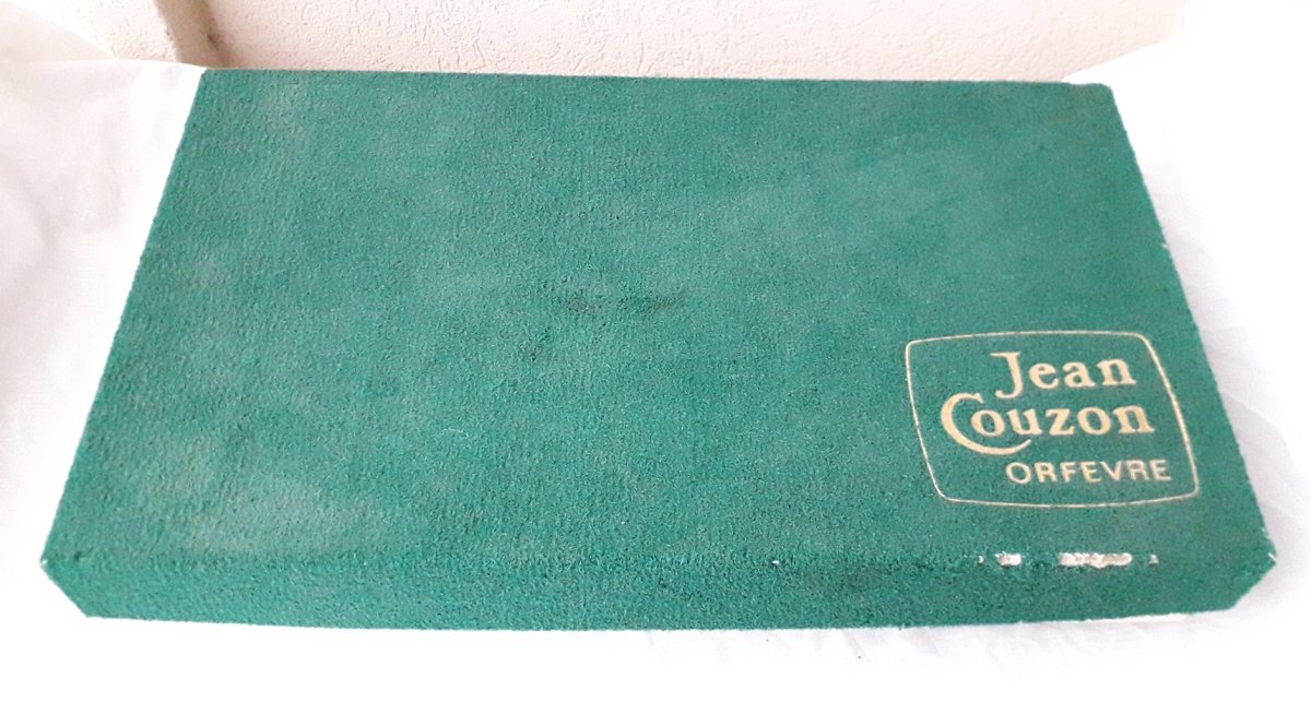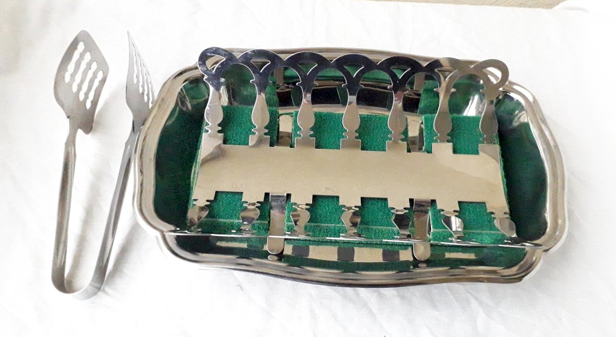 Plat à asperges avec sa pince, dans son coffret d'origine de Jean Couzon.