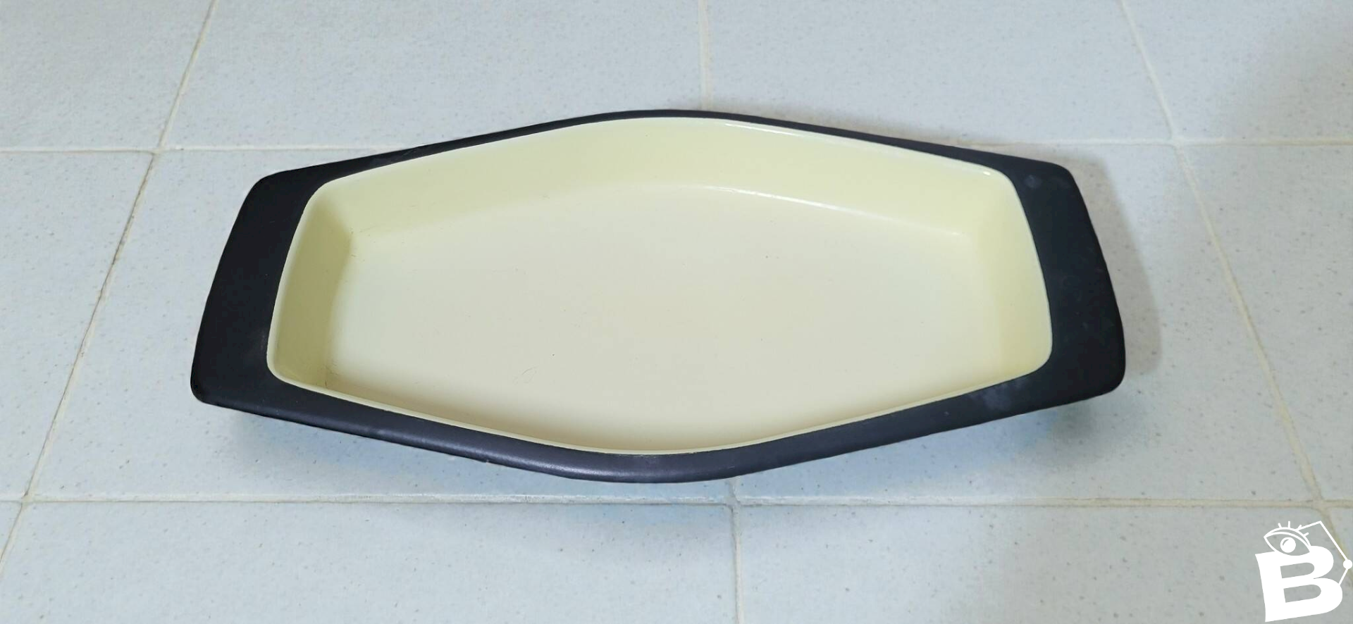 Plat aubecq années 60-70.Métal noir mat / intérieur émaillé jaune pâle.Dimensions 20, 5*40 cm.En bon état avec traces d'usage et d'ancienneté habituelles.Emballage soigné et livraison rapide.