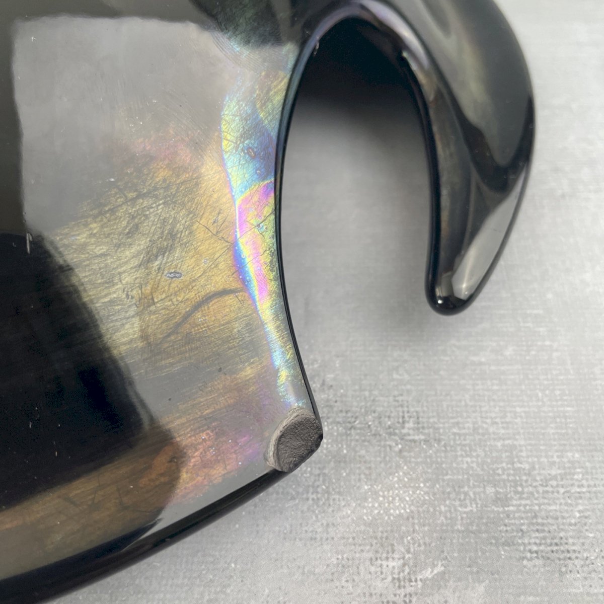 Plat centre de table coupe à fruit ou vide poche céramique noire irisé VERCERAM 6750 VERCERAM 6750 Iridescent Black Ceramic Fruit Bowl/Centre Table Dish Diamètre ~ 29 cm Poids ~ 1.2 kg Rayures d'usage et deux gros éclats en dessous, voir photos Pensez à grouper vos achats pour réduire les frais de port !