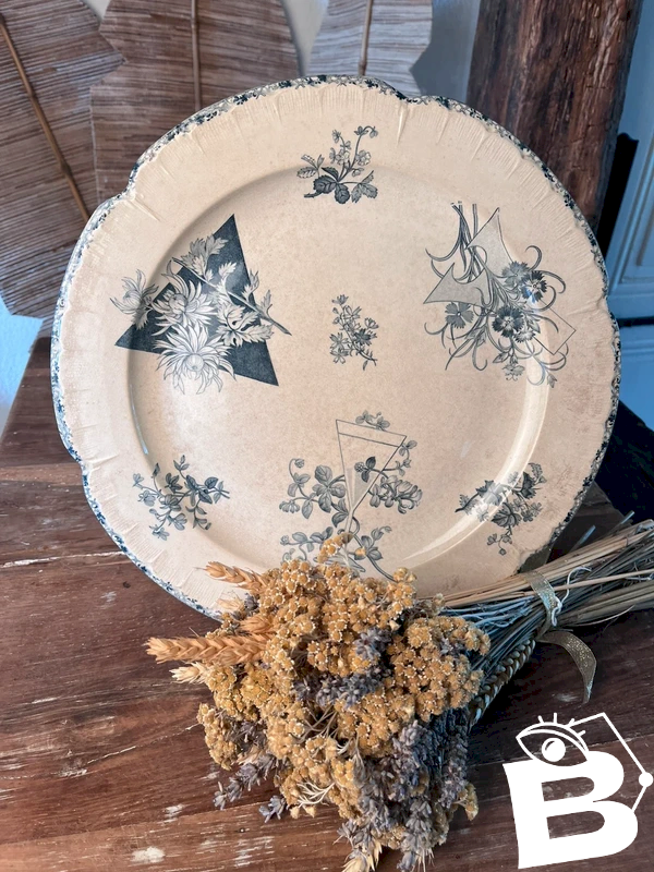 Très beau plat Choisy le Roi modèle Régence en terre de fer fin XIXe.
