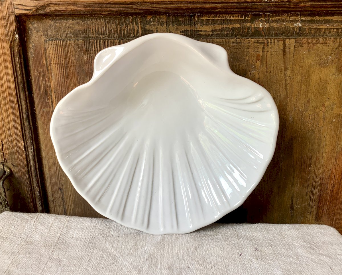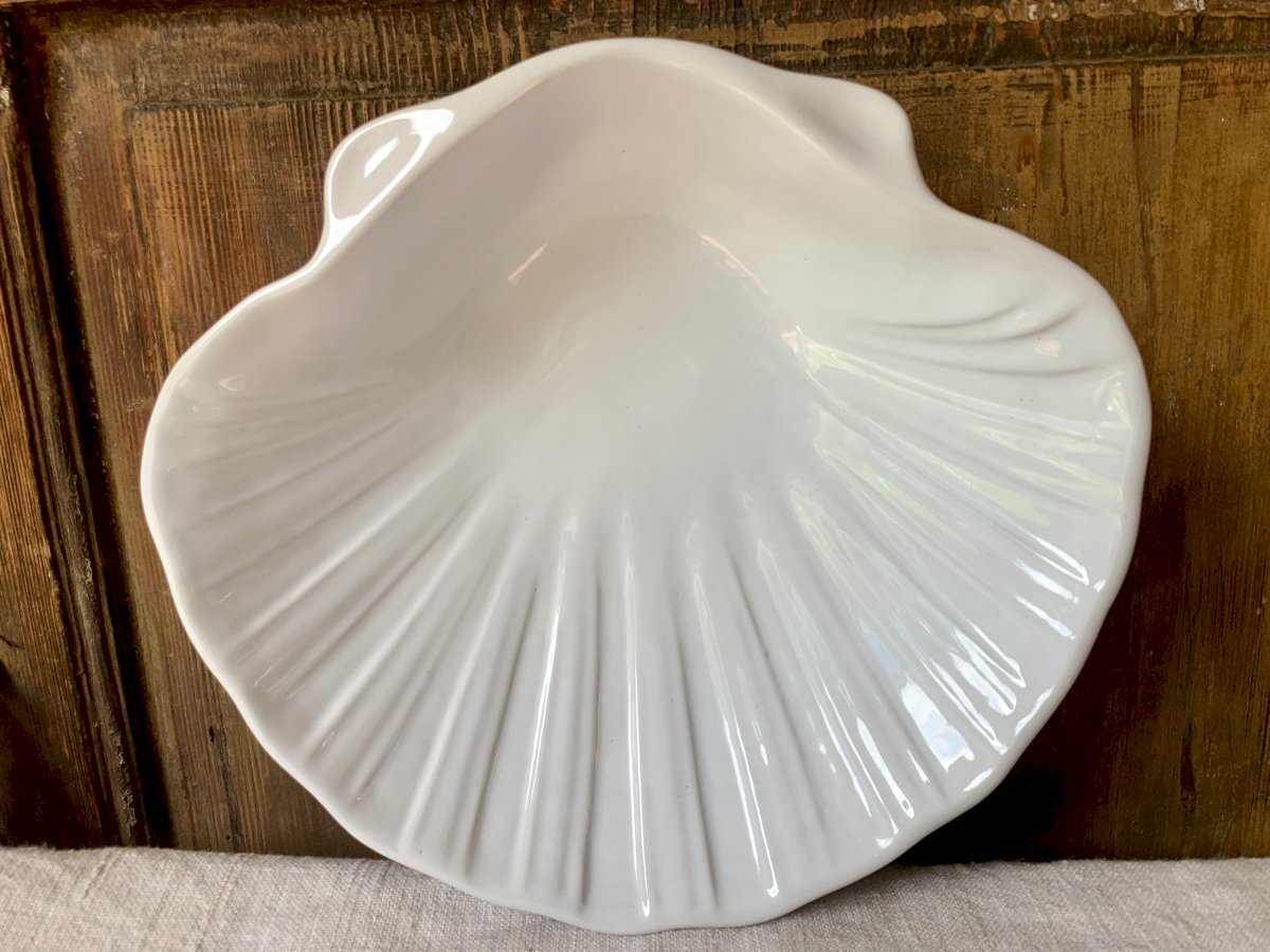 En parfait état, plat de cuisson Emile Henry, en forme de coquille , céramique blanche. 23cmx 25cm Hauteur 5cm