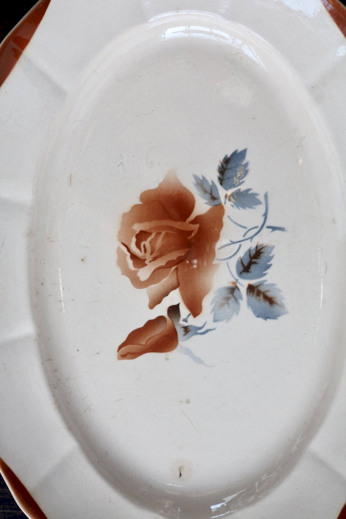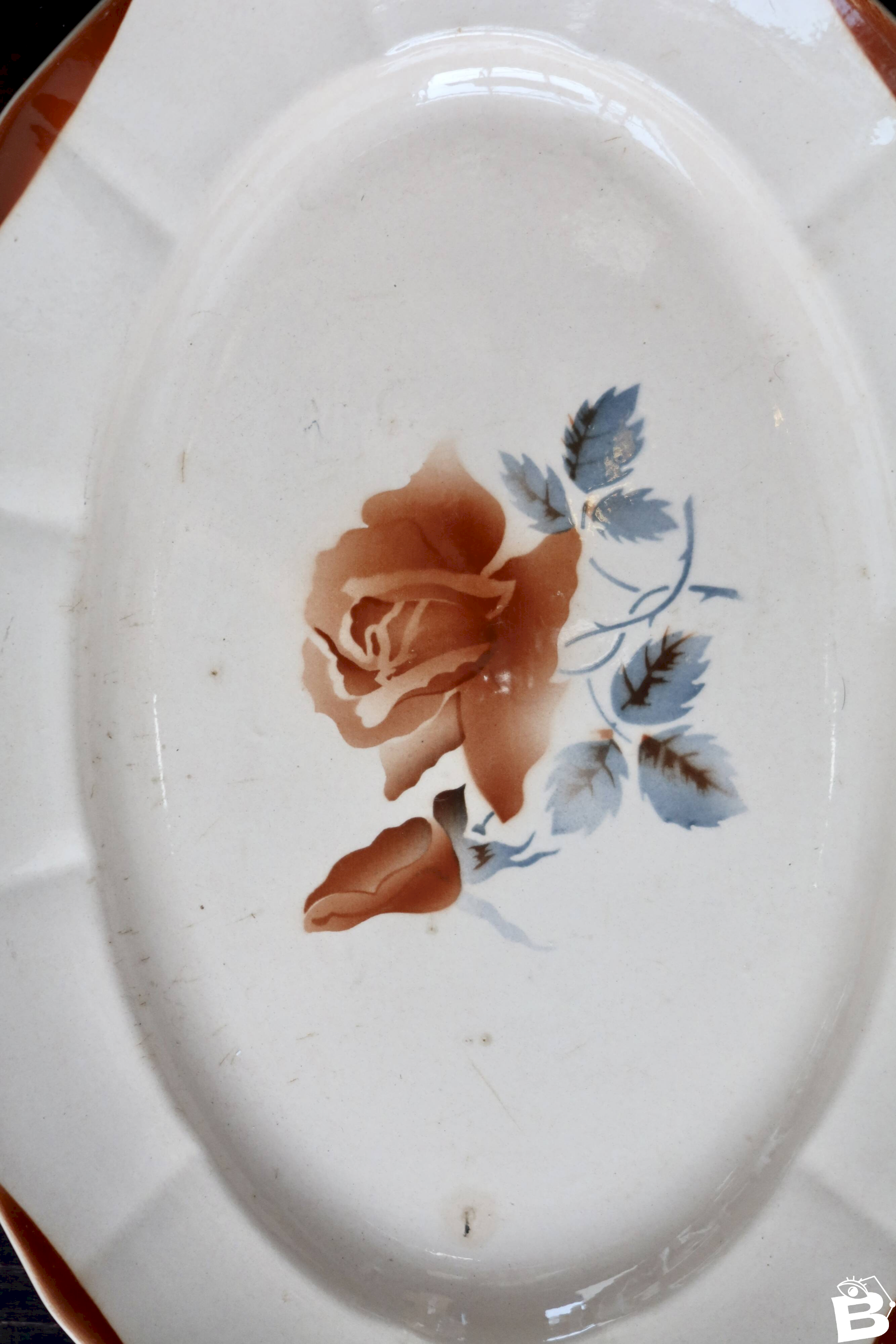 Plat de service ovale ancien en faïence Digoin Sarreguemines 9181 – Décor f Rose Céramique