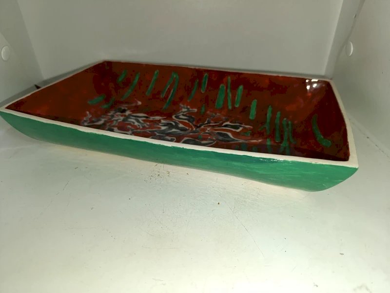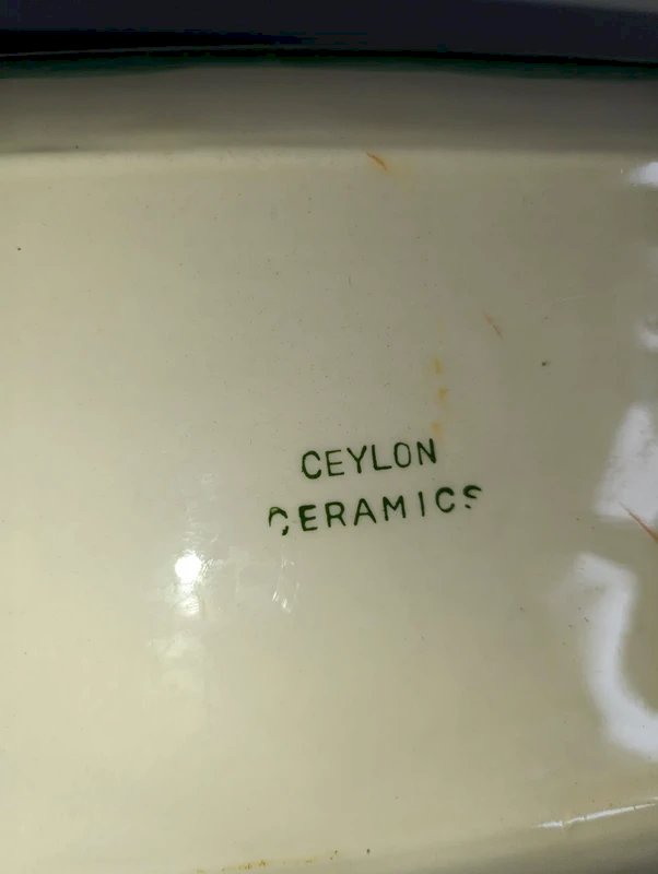 plat design signé Ceylon cermics en bon etat dimension 29.5x18.5 hauteur 5cm