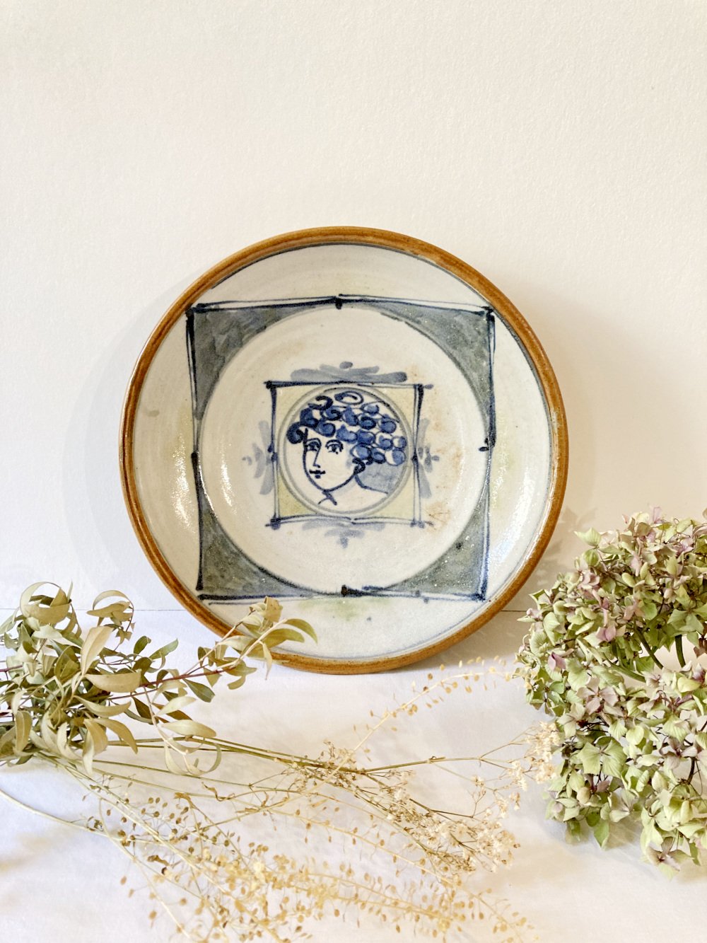 Beau plat ou saladier en grès signé Patrick Lefebvre, potier à à Barfleur en Normandie (aujourd'hui retraité). Peinture originale émaillée représentant une jeune femme à l'esthétique hellénistique. Années 1980. En très bon état, pièce unique.