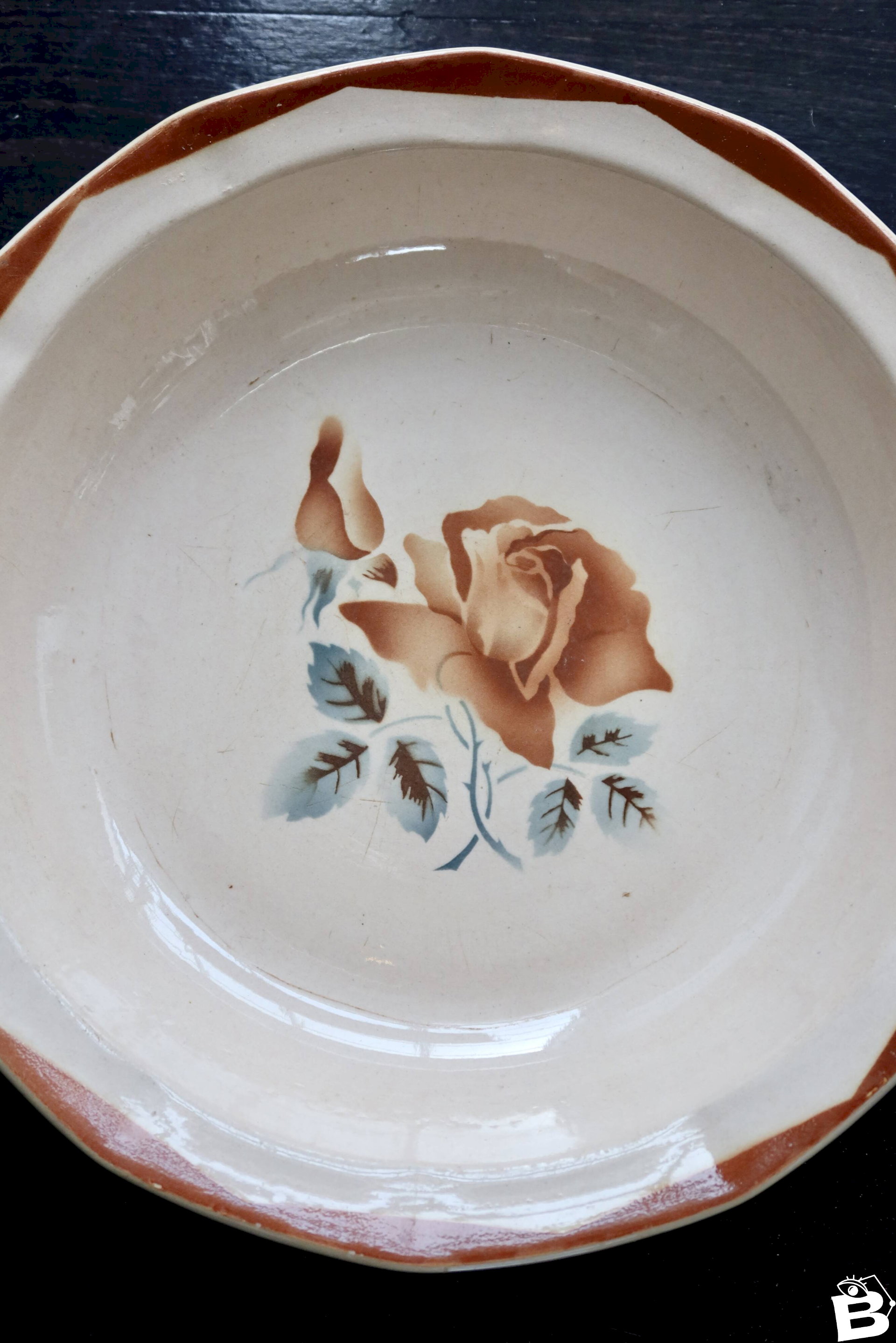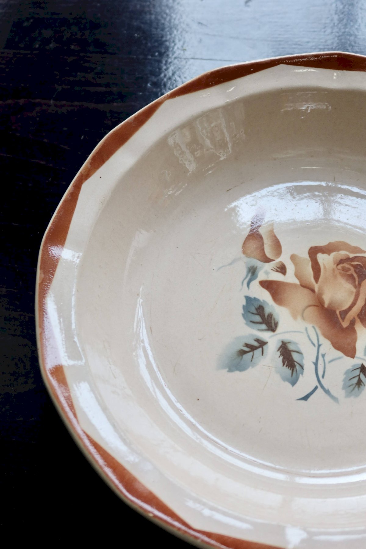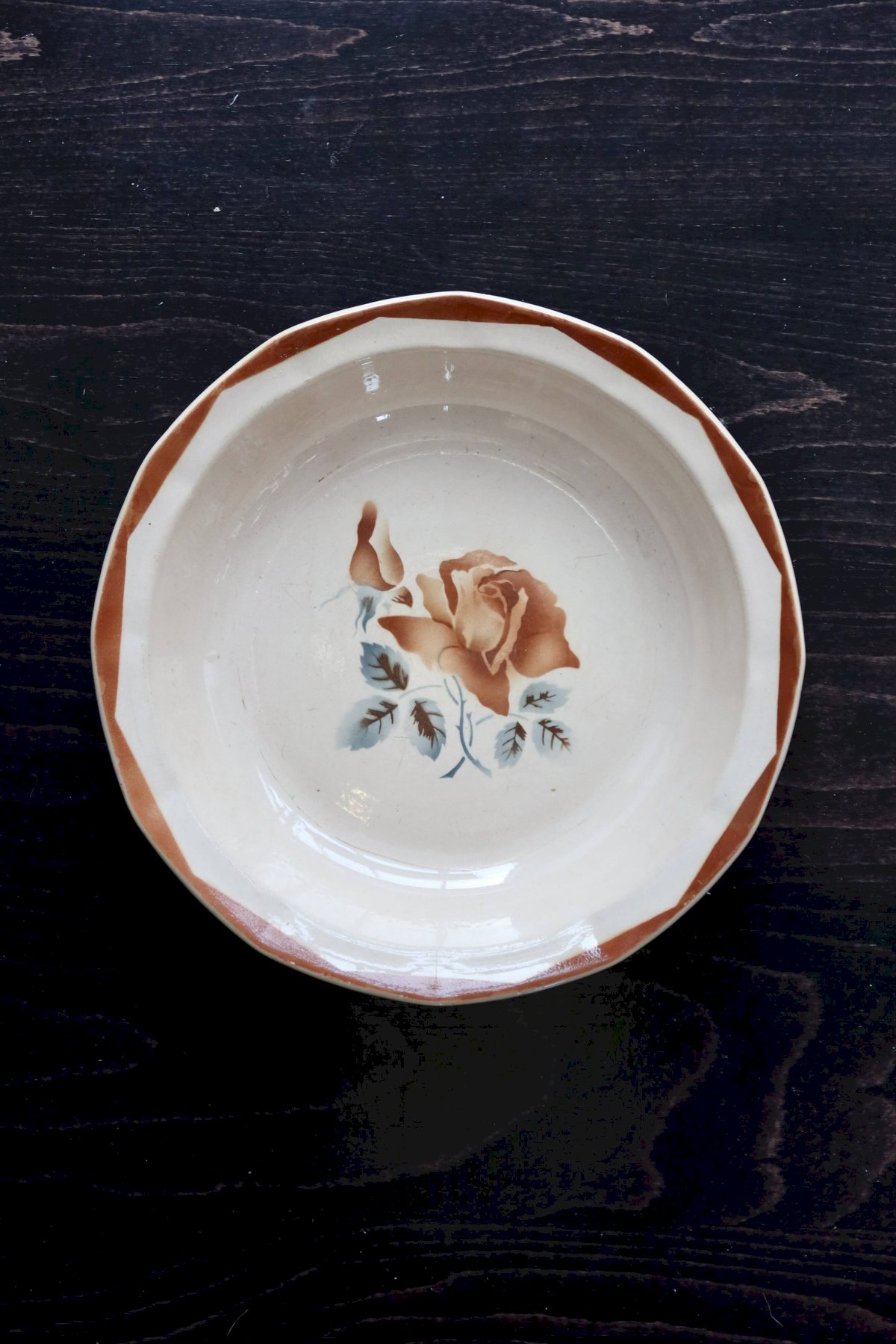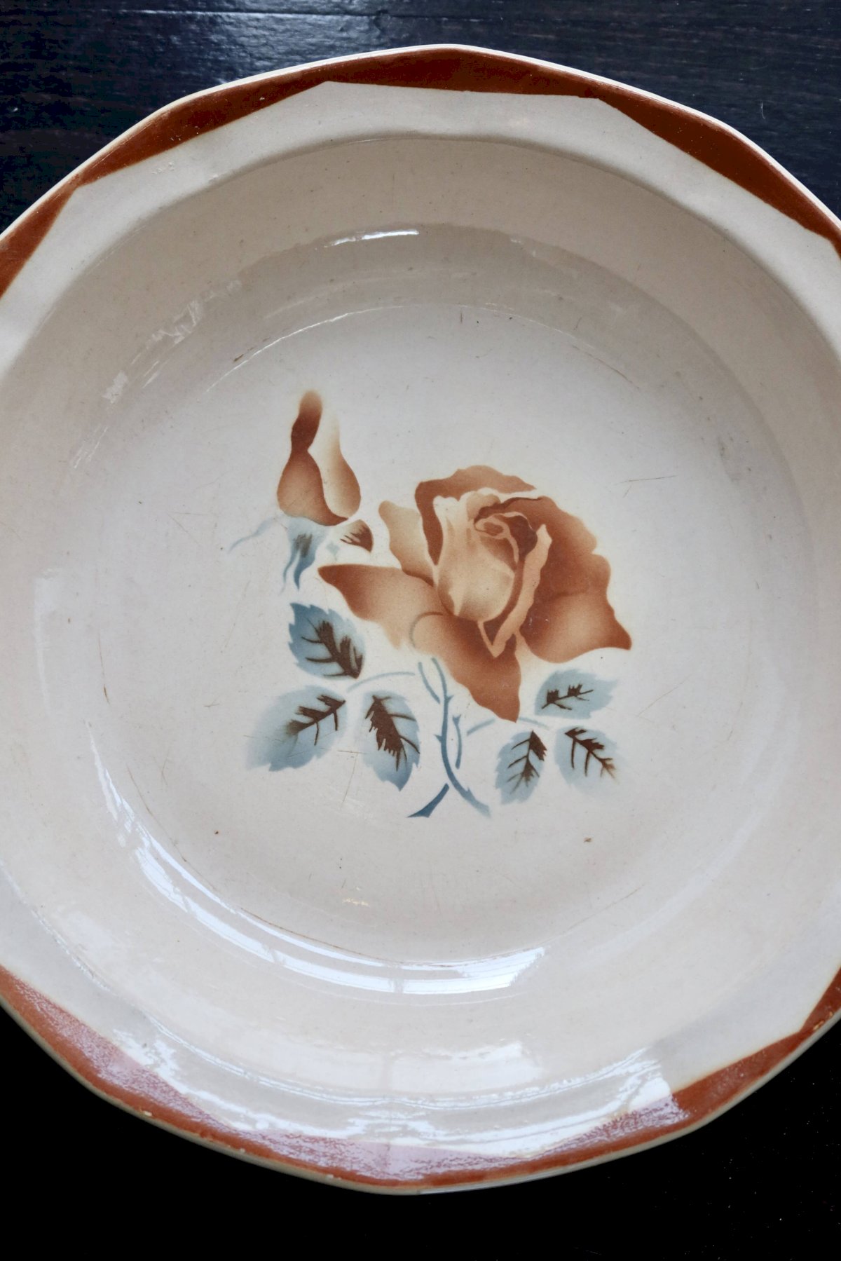 Plat rond et creux ancien en faïence Digoin Sarreguemines 9181 Rose Céramique