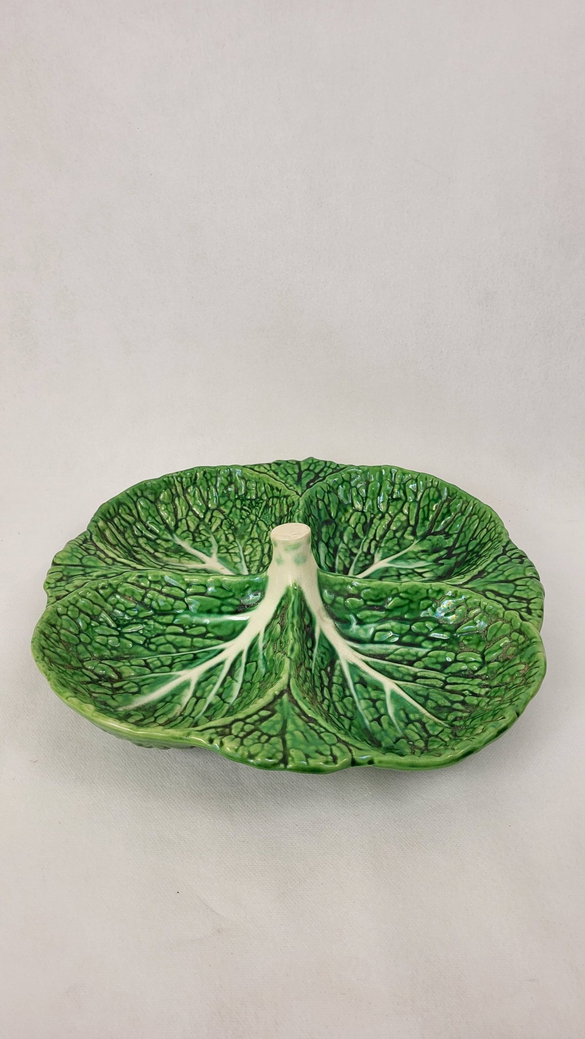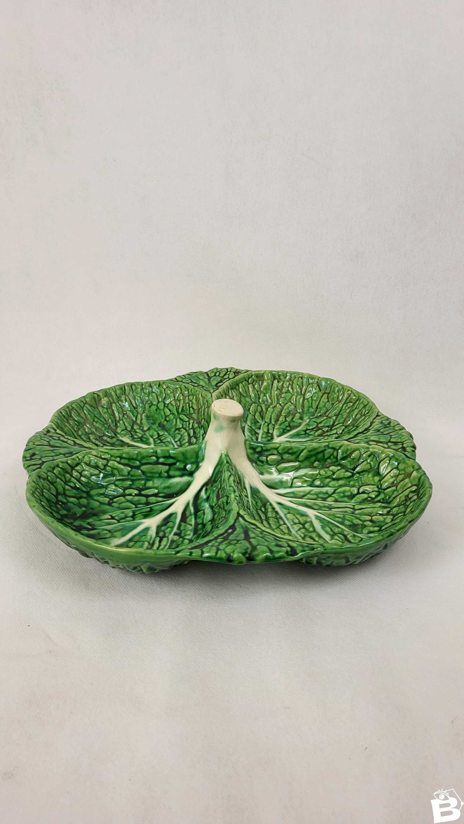 Plat / serviteur Feuille de choux barbotine Vert Céramique