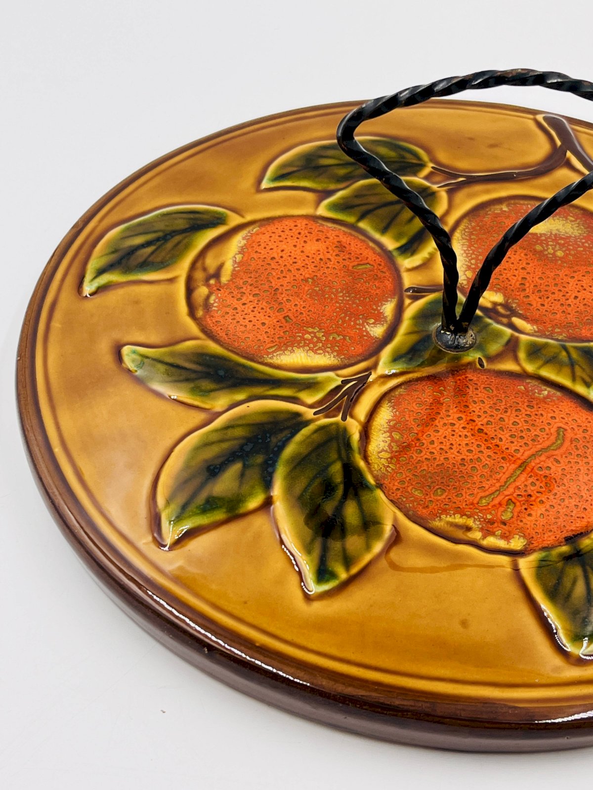 Années 1960 Plateau à fromages Céramique vernissée décor paille