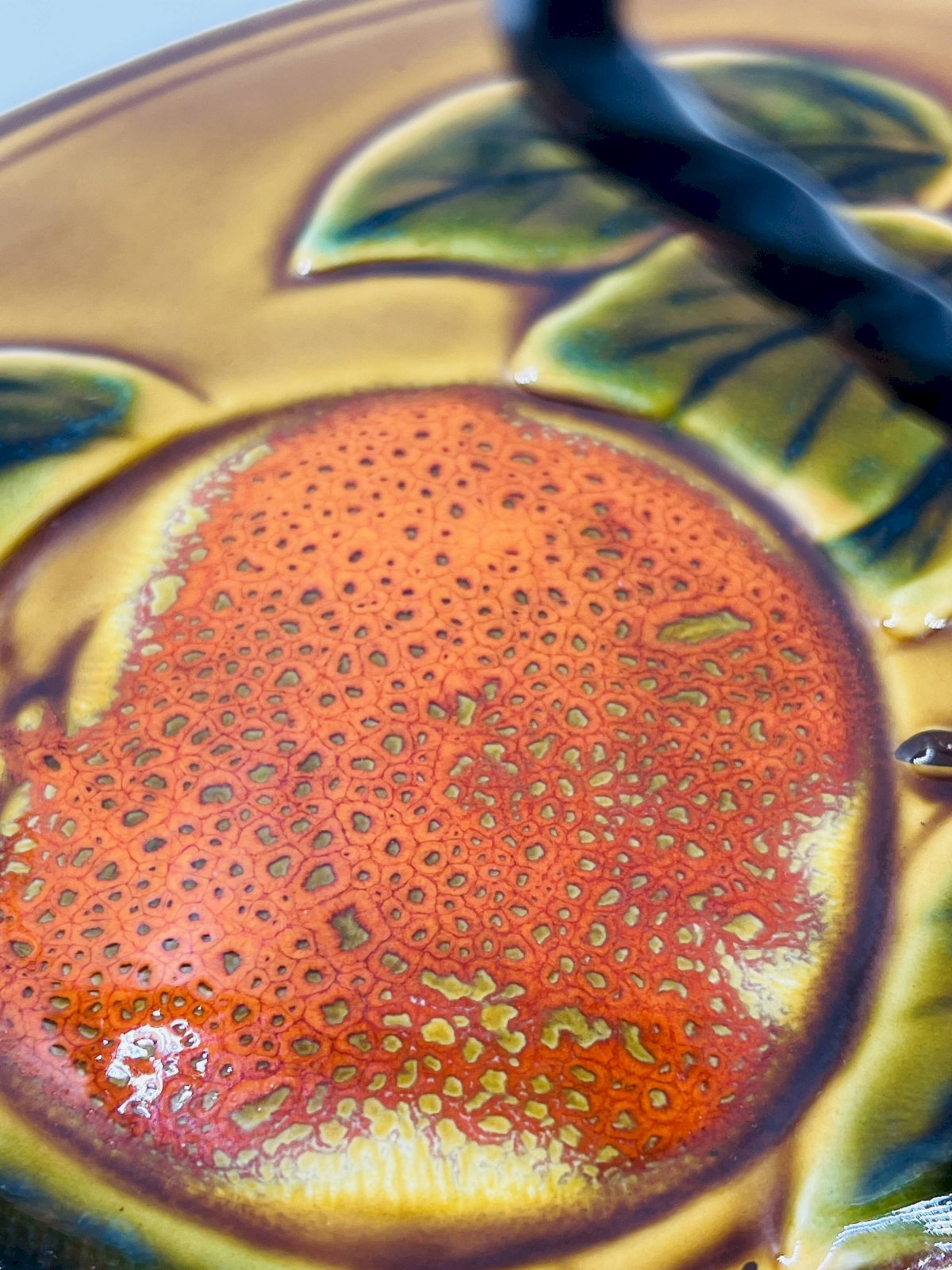 Ce plateau en céramique, aux nuances d'orange et de vert, est rehaussé par une poignée en métal noir, ajoutant une touche d'élégance et de fonctionnalité.- Fabriqué à Vallauris, célèbre pour sa tradition céramique, ce plateau incarne l'artisanat authentique et le savoir-faire français.- Son design fruité et coloré apporte une note de fraîcheur et de gaieté à votre table.- Idéal pour présenter vos fromages avec style lors de vos réceptions ou dîners.Ajoutez ce plateau à votre collection pour sublimer vos moments gourmands et impressionner vos invités.Dimensions : 30 x 30 x H 2 cm.