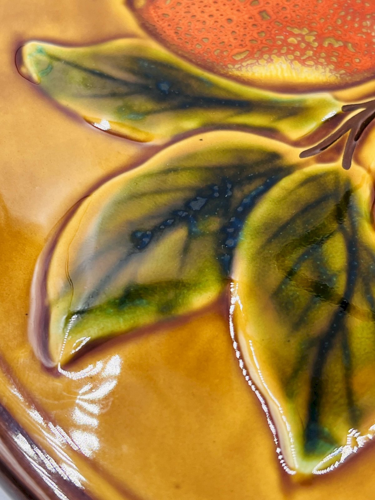 Plateau à fromage vintage en forme de feuille dans le gout de vallauris en bon etat(made in chiner )